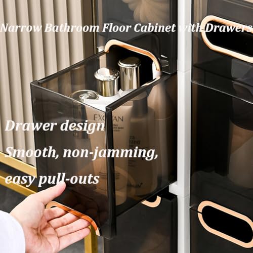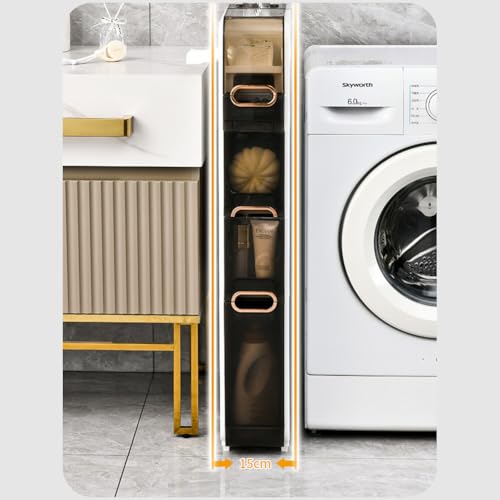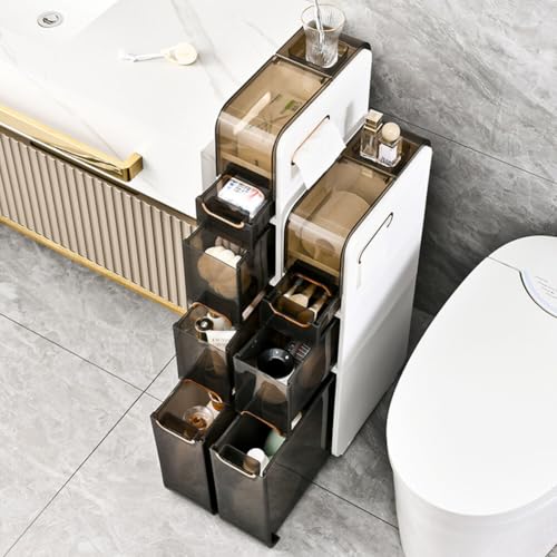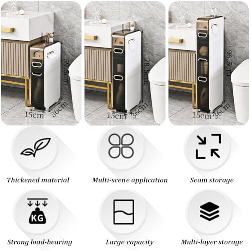 4-Tiers Slim Bathroom Storage Cabinet Narrow Bathroom Floor Storage Cabinet Plastic Drawers Organizer with Tissue Box and Wheels for Small Spaces, Kitchen, Laundry,Living Room Toilet Gap