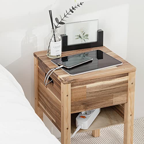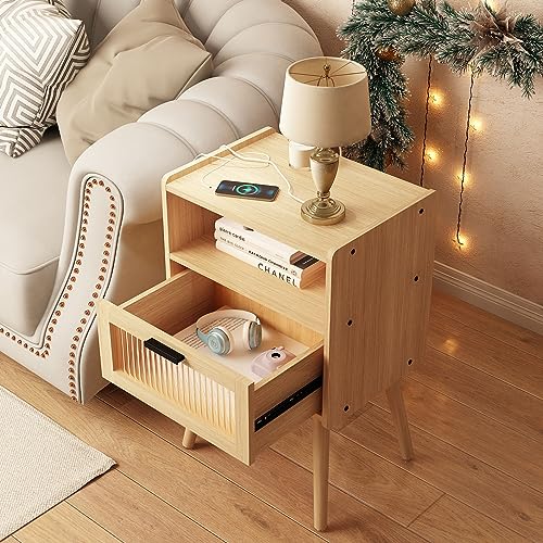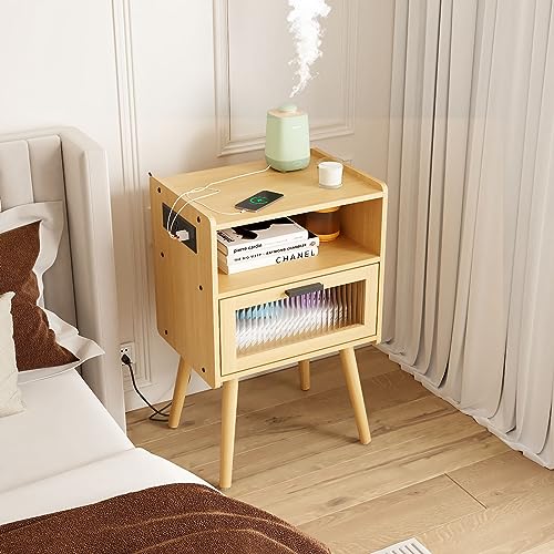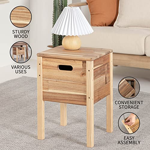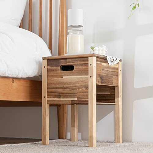 Goodsdeco Wood End Table with Storage, End Table for Living Room Bedroom, Entryway Bedside Cavinets Table, Storage Shelf (Natural)
