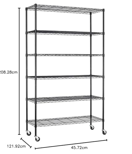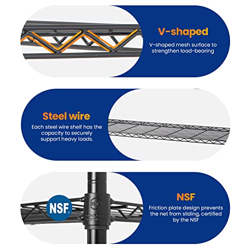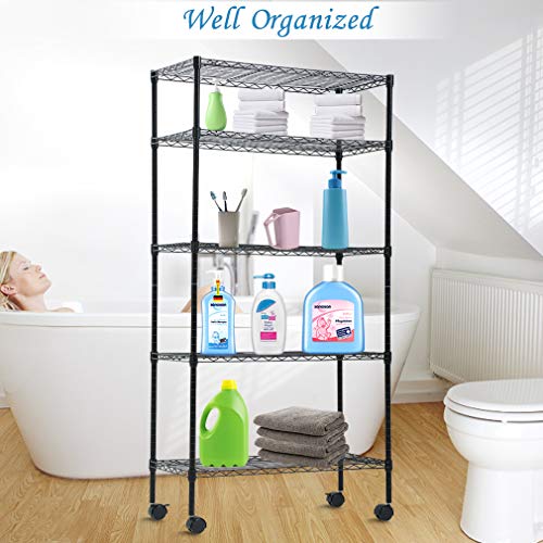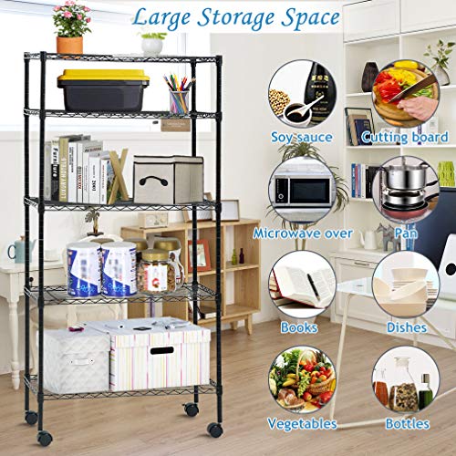 Dkelincs 5 Tier Wire Shelving with Wheels, 14" W X 30" L X 60" NSF Metal Storage Shelves Height Adjustable Utility Garage Shelving Unit for Kitchen Living Room Basement, Black