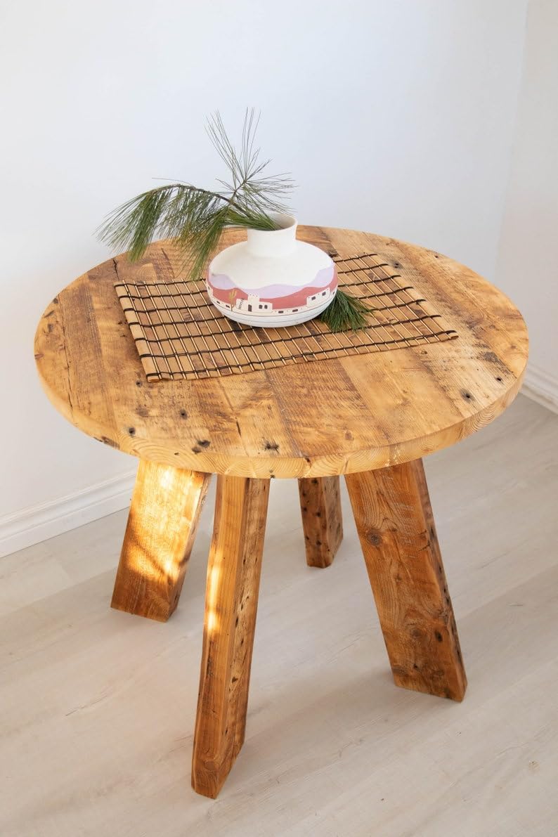 Large Rustic Table, Circular Wood Coffee Table, Unique Recycled Wooden Large Circular Table, Round Coffee Table, Modern Contemporary Living Room Furniture, 30"W x 28"H x 30"D, Table for Living Room