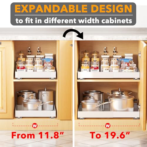SpaceAid Pull Out Cabinet Organizer, 1 Pack Expandable (11.8"-19.6") Heavy Duty Pull-Out Drawer for Cabinets with Adhesive Tape, Kitchen Slide Out Shelves, Roll Out Shelf Storage (White, 17" Deep)