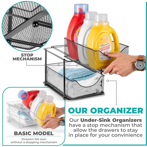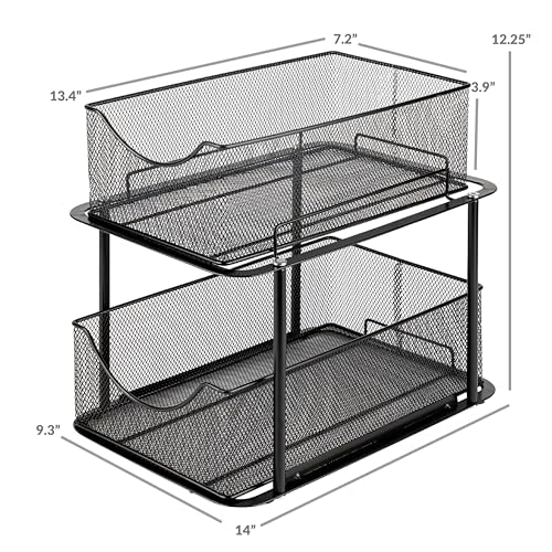 Sorbus 2 Sets of 2 Tier Metal Under Sink Organizer for Bathroom, Kitchen, Strong Steel Mesh Sliding Drawers for Under Sink, Under Cabinet, Closet, Kitchen, Pantry, Bathroom Organizers and Storage