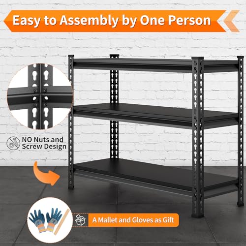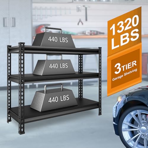 3-Tier Garage Shelving Heavy Duty,40”W x 18”D x 36”H Metal Shelving Unit,1320 lbs Weight Capacity Adjustable Storage Shelves for Retiple Tanks, Aquariums, Pantry, Garage,Black