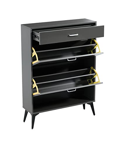 NicBex Accent Shoe Storage Cabinet with 3 Flip Drawers,Shoe Rack Storage Organizer,Narrow Freestanding Shoes Organizer Cabinet for Closet Hallway Bedroom Entryway,Walnut