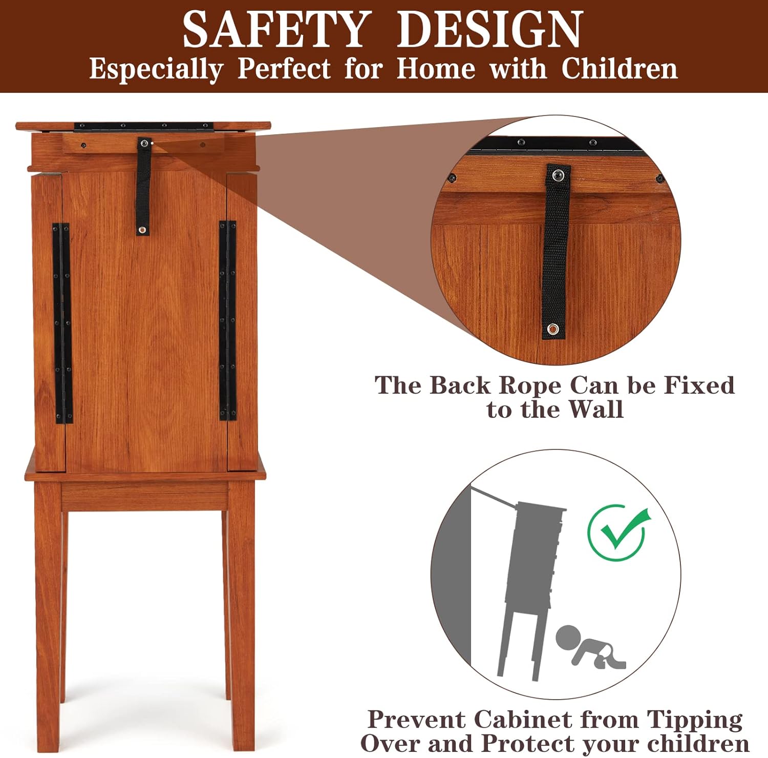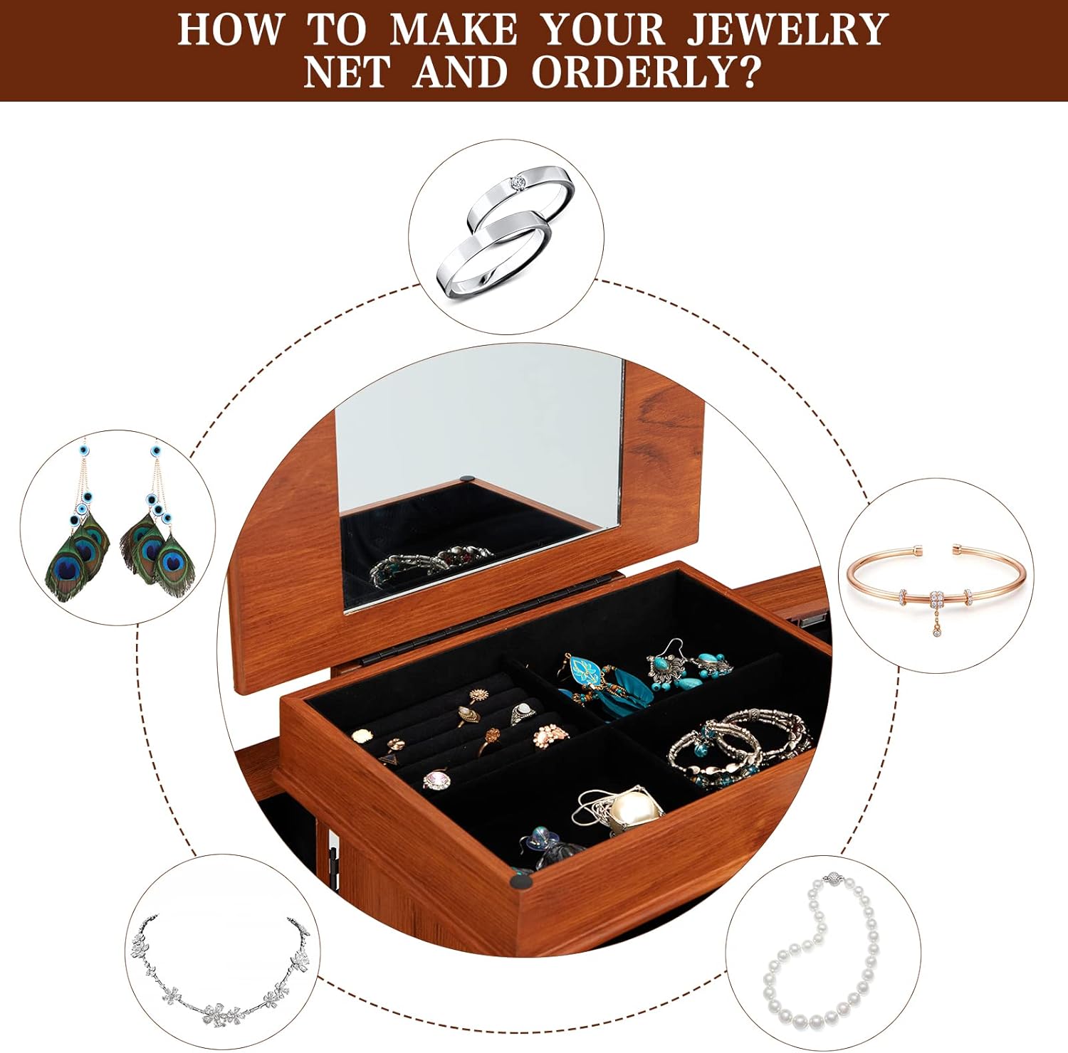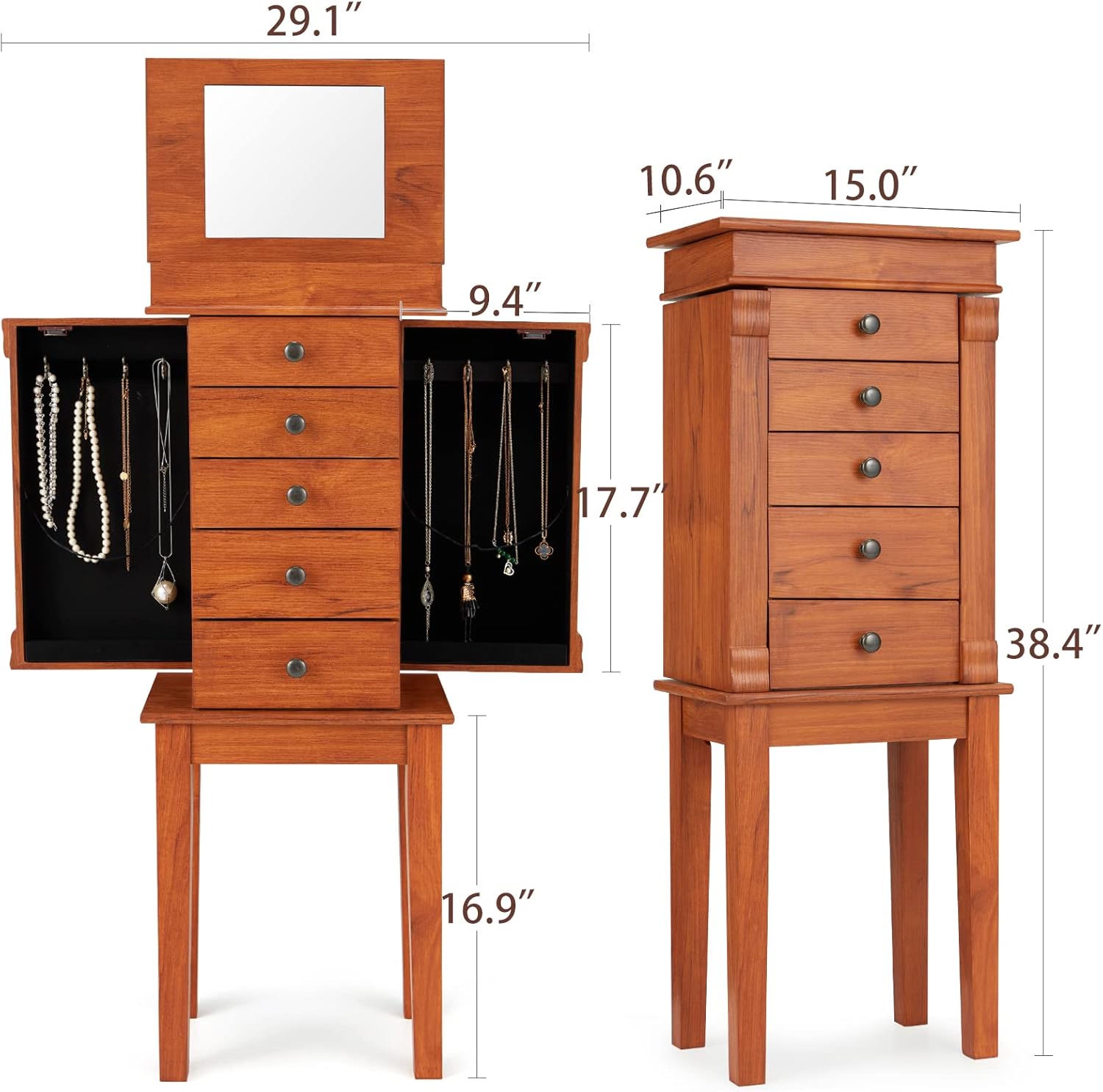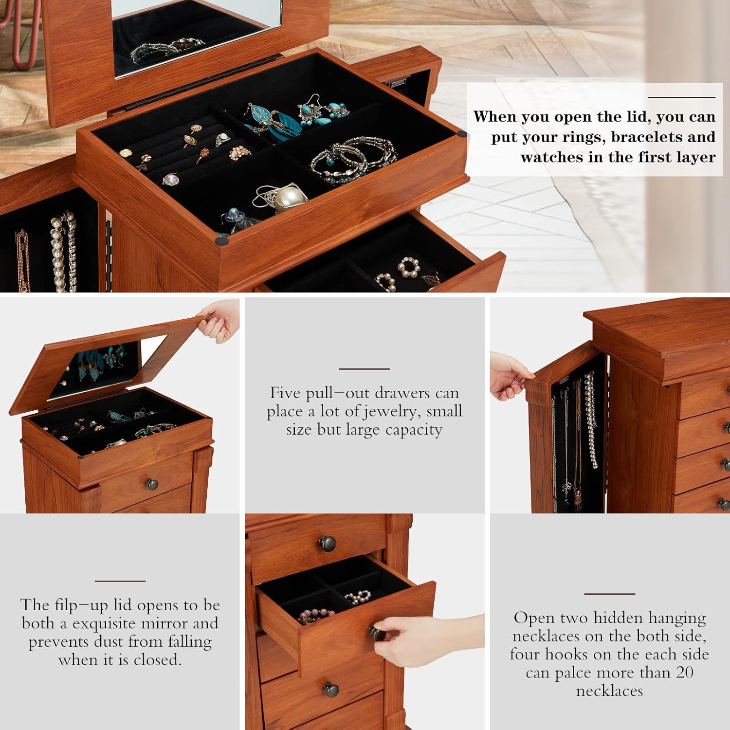 AVAWING Jewelry Cabinet Armoire with Top Flip Makeup Mirror, 5 Drawers&8 Necklace Hooks, Jewelry Storage Organizer with 2 Side Doors, Jewelry Armoire Box Chest with Top Organizer Compartment (Cherry)