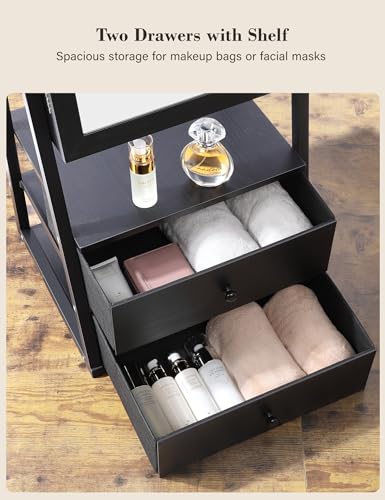 Nicetree LED Mirror Jewelry Cabinet Standing, Lockable Jewelry Cabinet Armoire with 2 Drawers, Full Length Mirror with Jewelry Storage, Christmas Gifts, Black…
