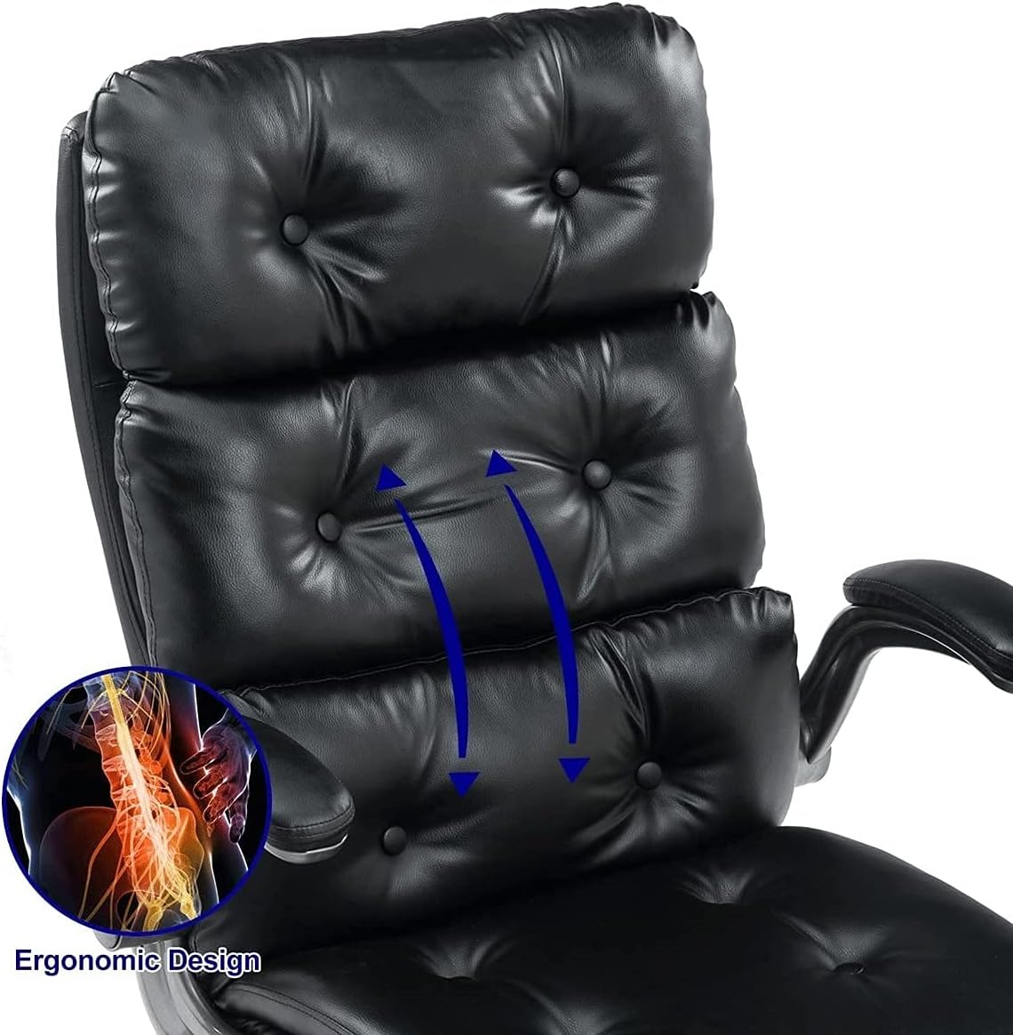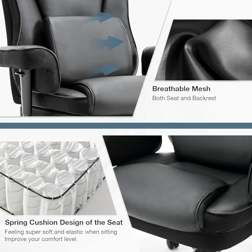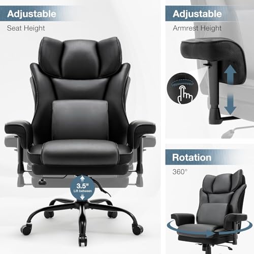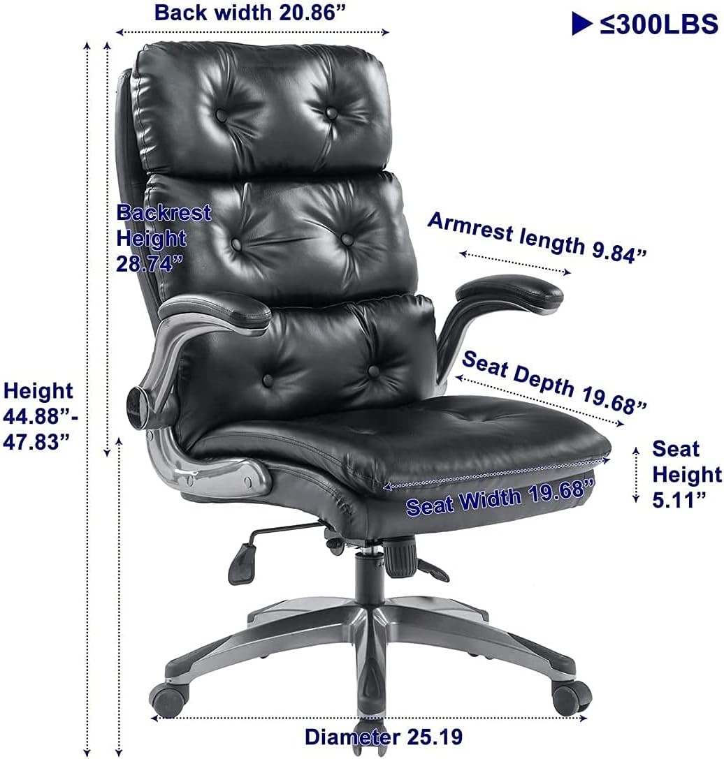 Office Chair Big and Tall PU Leather Executive Home Desk Chair, Thick Padding and Ergonomic Lumbar Support with Adjustable Tilt Angle (