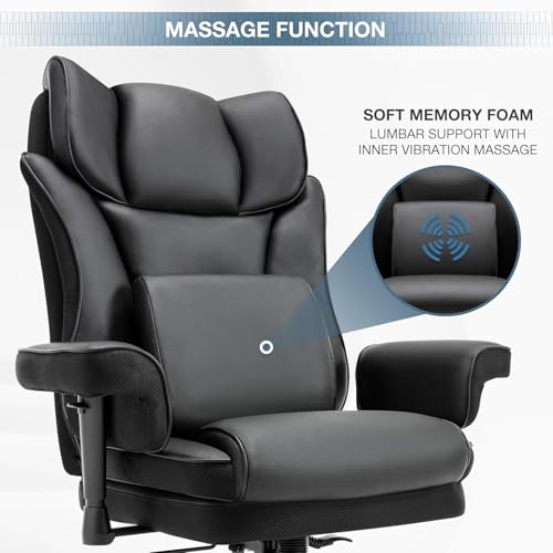 Warmiehomy Executive Office Chair, Big and Tall Office Chair with Adjustable Armrests Black Home Office Desk Chairs, PU Leather Ergonomic Computer Desk Chair with Masage Lumbar Support
