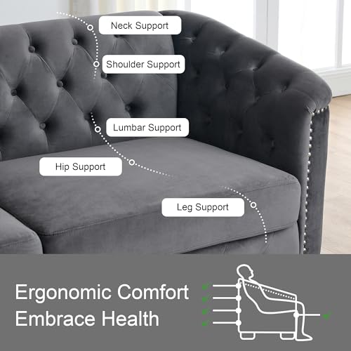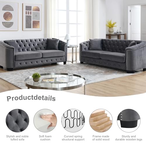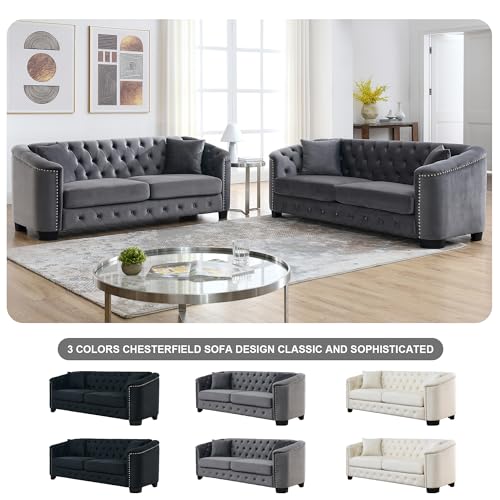 2 Piece Modern Chesterfield Velvet 77" 3-Seater Sofa Set,Upholstered Tufted Backrests with Nailhead Arms and 4 Cushions for Living Room, Bedroom, Apartment-Beige