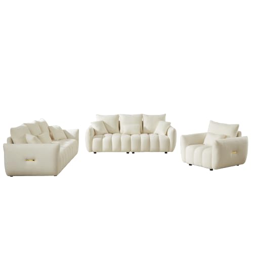 Dolonm 2 Piece Living Room Sofa Set, 6 Seater Sofa Couch Set, Teddy Fabric Oversize Sofa Couch, Comfy Sofa for Living Room, Apartment, Bouclé Deep Seat Sofa, Cream White Sofa