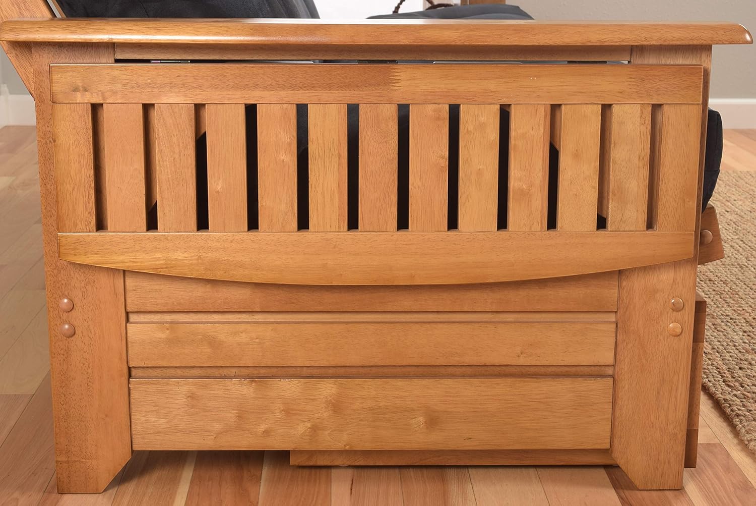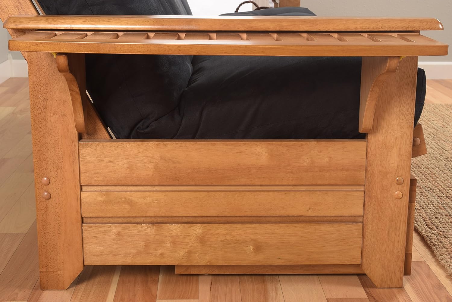 Lakeshore Complete Futon - Drawers, Frame and Mattress Set - Arm Tray 8" Innerspring Queen Size Sofa Under Bed Storage Lounger (Beige, Queen)