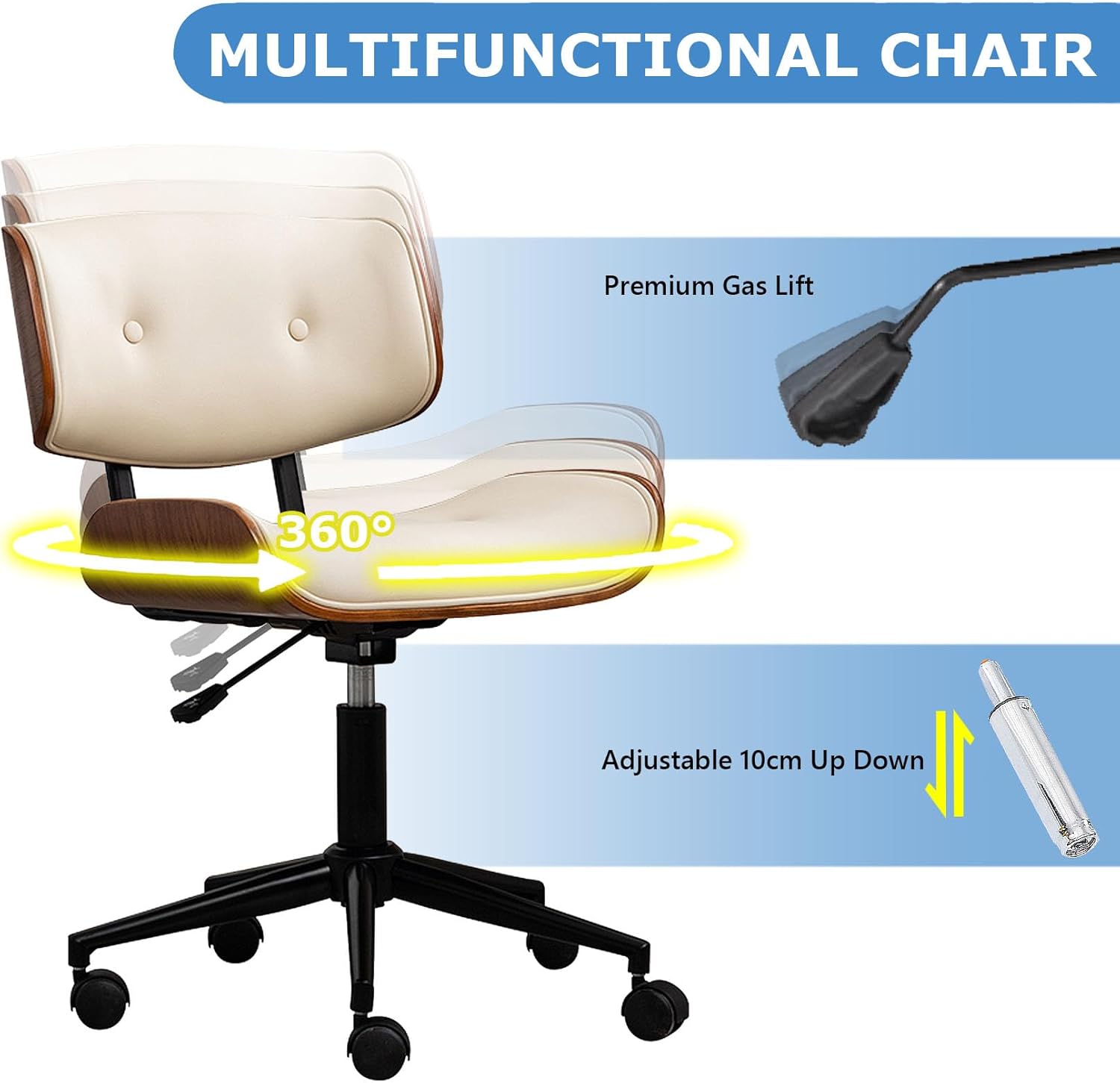 Home Office Chair PU Leather Ergonomic Desk Chair Height Adjustable Swivel Task Chair, Computer Executive Chair for Home Office Living Room Study