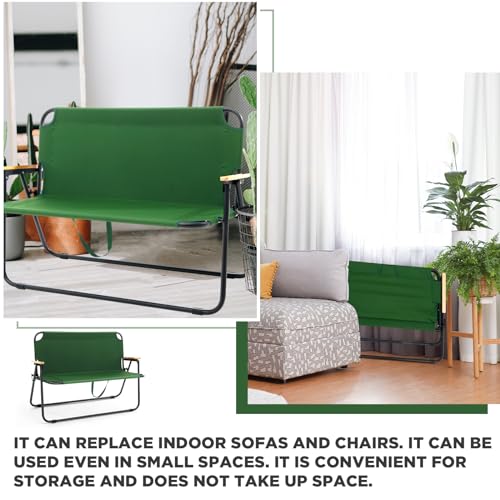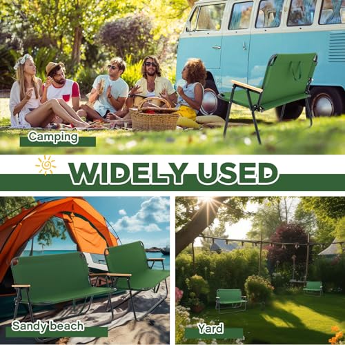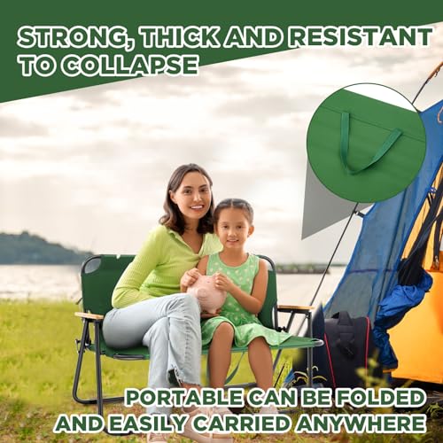 2 Pcs Folding Double Lawn and Camping Chair 2 Person Lightweight Weatherproof Chair Table Cot Bench for Backyard Patio or Campsite with Carry Bags Handles (Black)
