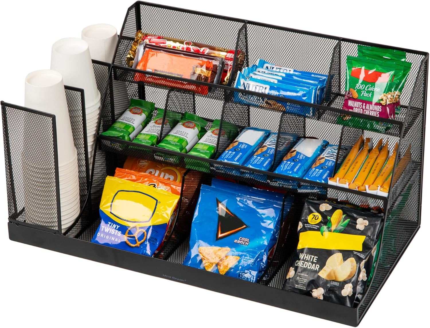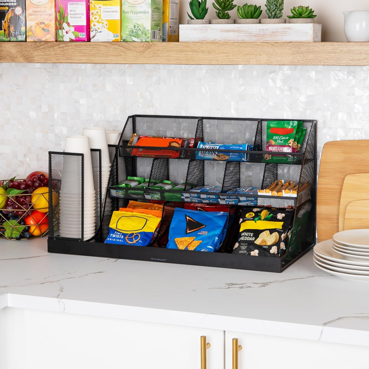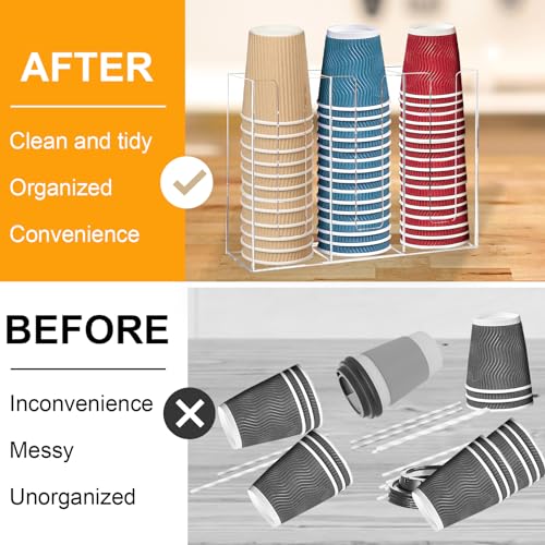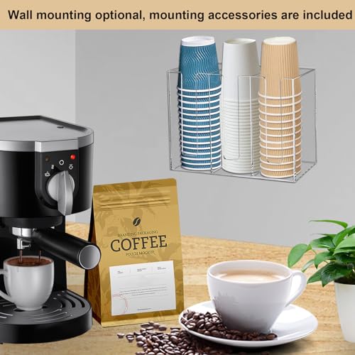 Coffee Cup Dispenser For Counter,Disposable Cup And Lid Holder Organizer With 4 Compartments, Wall Mount Cup Holder For Plastic,Paper Cups,Straws,Coffee Bar Set Up,Breakroom Organizer,Party Supplies