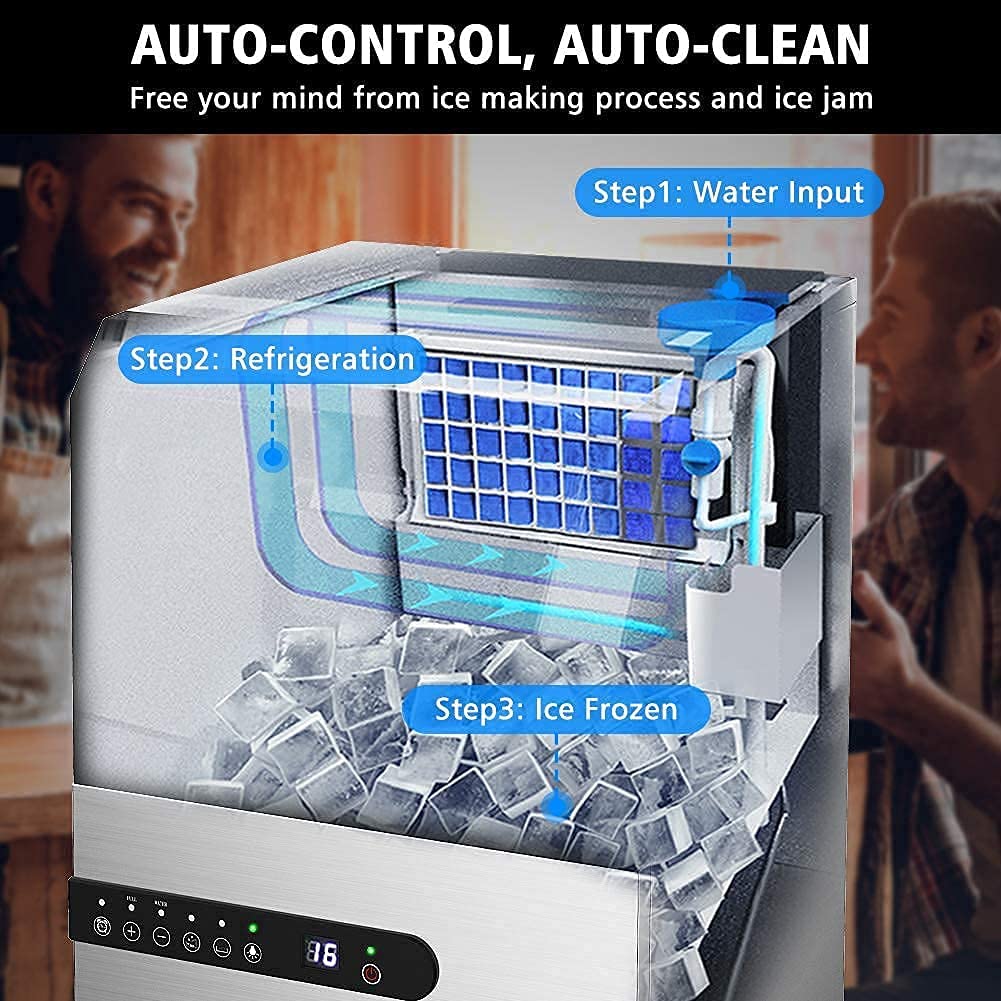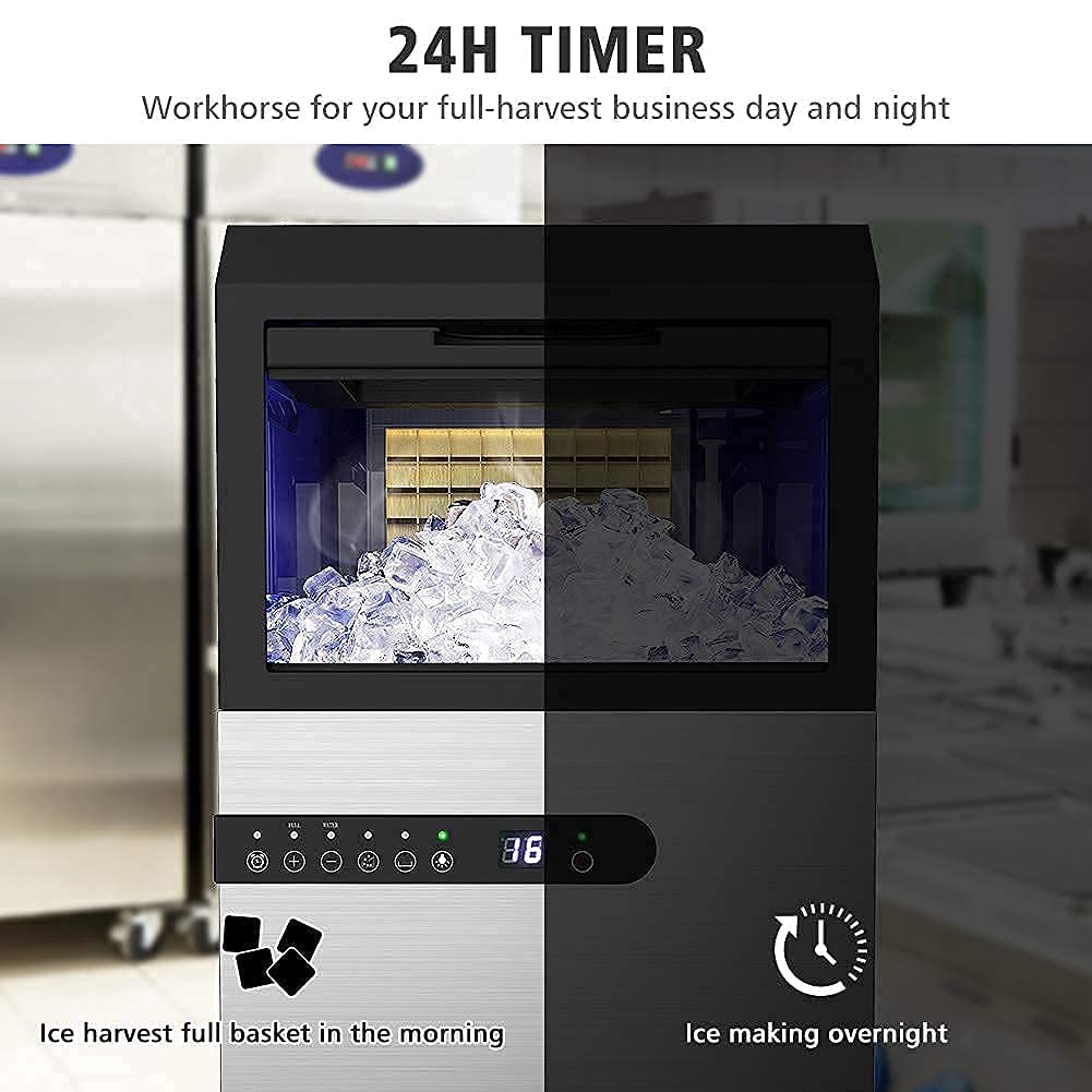 LifePlus Commercial Ice Maker Machine 100Lbs/24H, Stainless Steel Under Counter ice Maker with Large Storage Bin, 45 Ice Cubes/Cycle, 2 Way Water Supply, Freestanding for Home Party Shop Office Bar