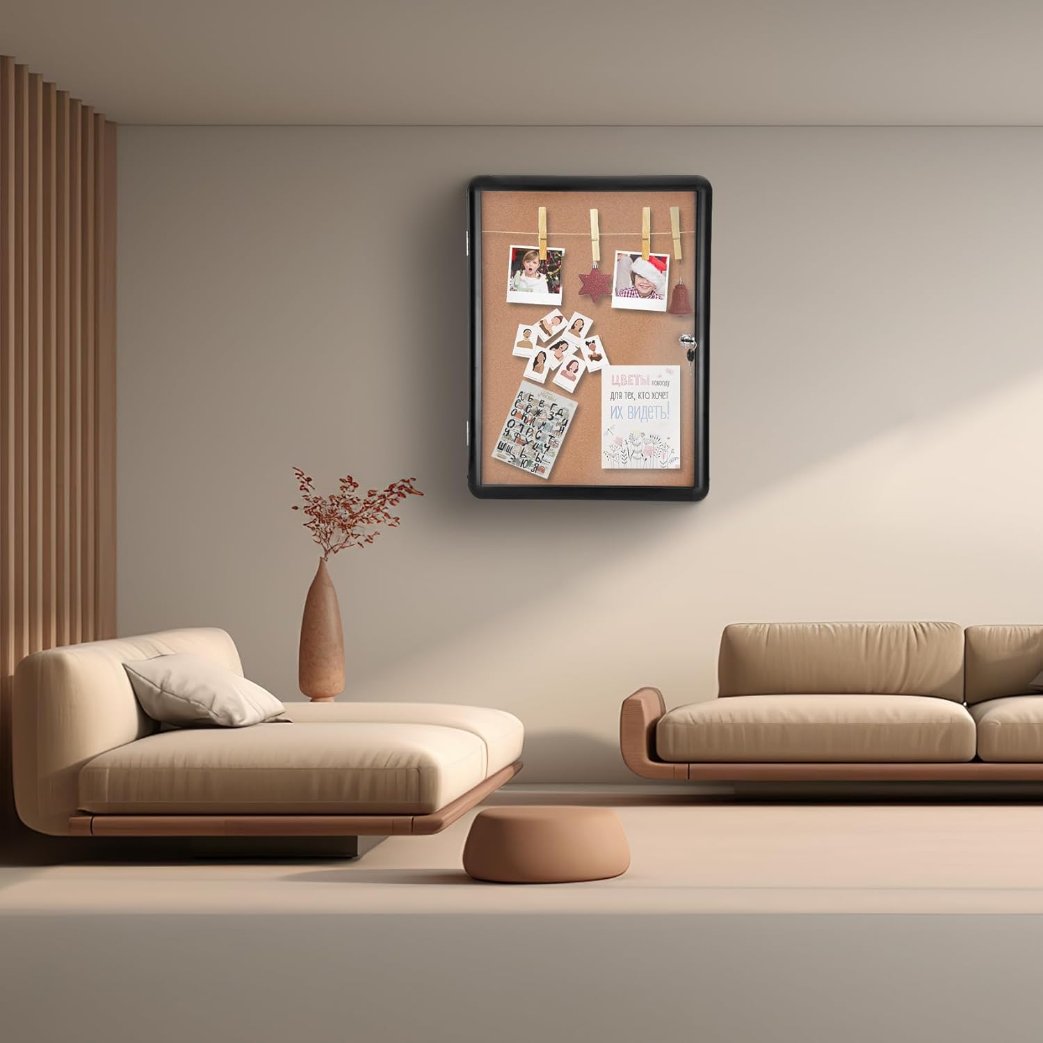 36"x24" Enclosed Cork Bulletin Board Tamper-Proof Dispaly Case, Aluminium Frame, Shatter Resistant Lockable Bulletin Board, Enclosed Cork Board for School, Office, Commercial, Hospital etc.