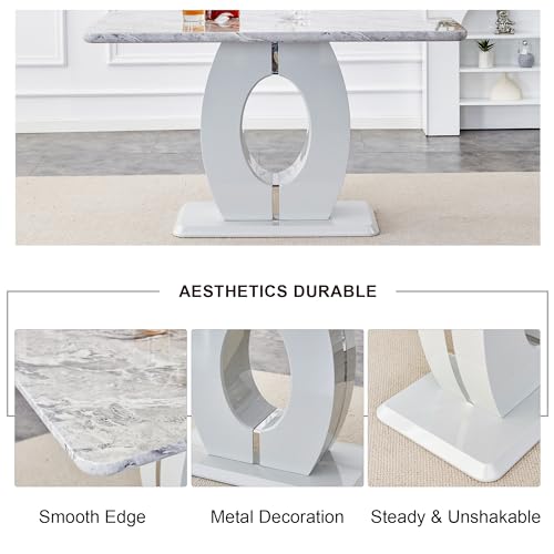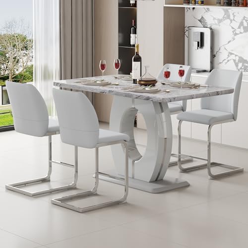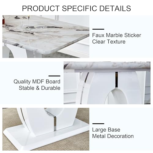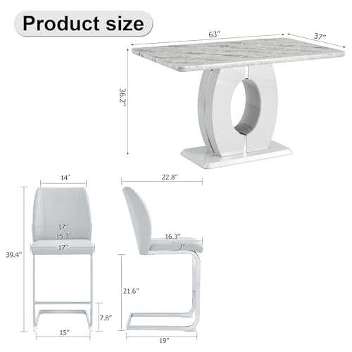 Bar Table And Chair Set Of 4, 5 Pcs Bar Height Table & PU Leather Bar Stools With Back, 63" Counter Height Dining Table Set, Faux Marble Bar Table Set Of 4, Ideal For Kitchen, Restaurant, Living Room