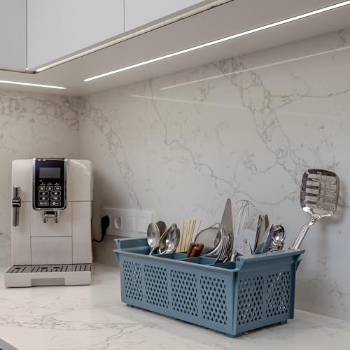 Flatware Rack Set of 2 – 8-slot Plastic Cutlery Basket – Large 16" Organizer for Knives, Forks, Spoons, Silverware, Kitchen Utensils, Essentials, Craft & Office Supplies – Dishwasher Basket