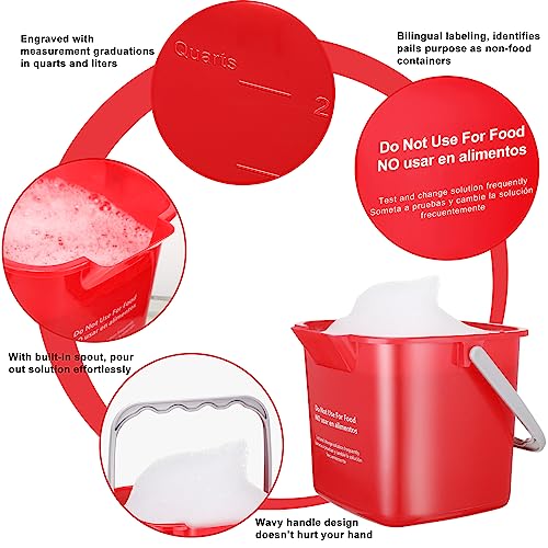 12 Pcs 3 Quart Cleaning Bucket Small Sanitizing Square Bucket Detergent Pail for Home Office Commercial Restaurant Kitchen Bathroom School (Red)