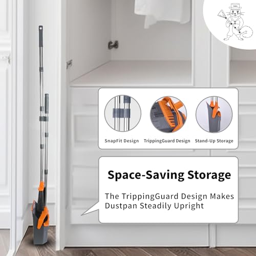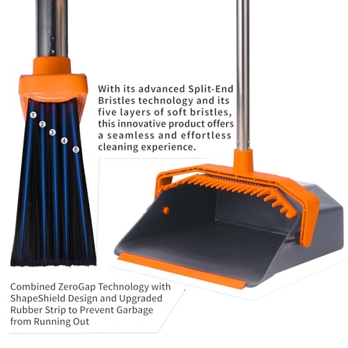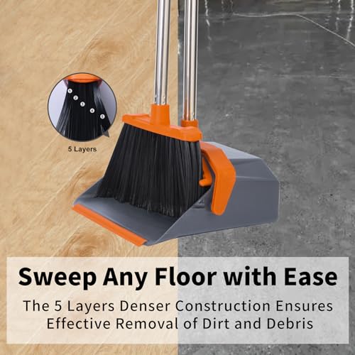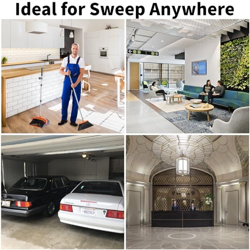 Brooms and Dustpans 3-Pack, Commercial Broom with Dustpan Combo Set, Large Brooms with 51'' Long Handle, Self-Cleaning Dust Pan Teeth for Home Hall Lobby Office Garage - Black