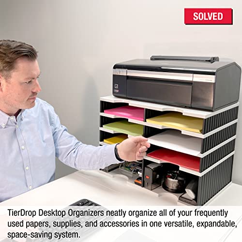 Desktop Organizer 4 Letter Tray Sorter PLUS Riser Storage Base for Easy Access to Lower Slots, Desk Accessories & Supplies. Optional File Topper & Drawers
