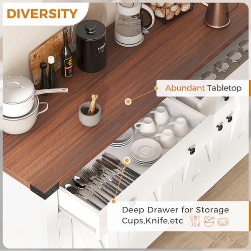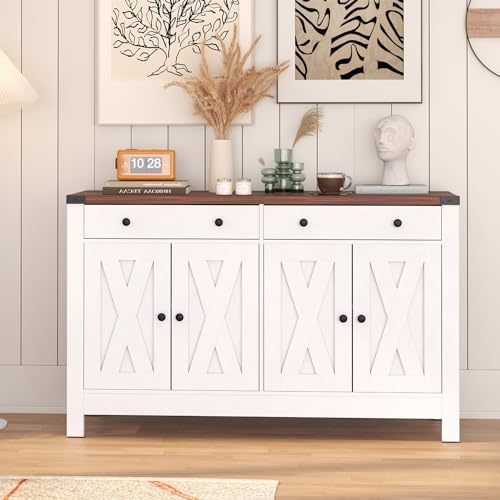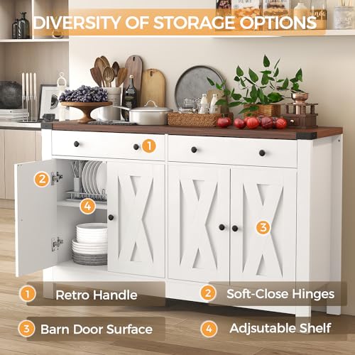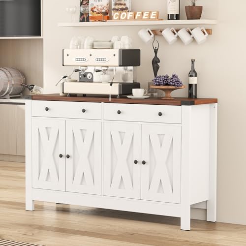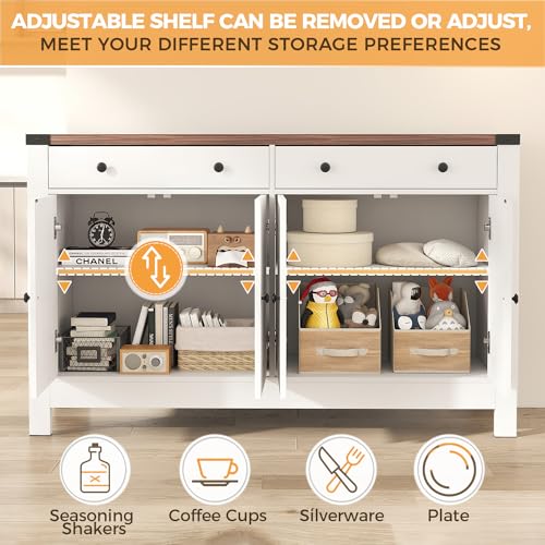 Sideboard Buffet Cabinet, Black Kitchen Sideboard Cabinet with 4 Door, Farmhouse Coffee Bar Cabinet with 2 Drawer Storage and Adjustable Shelves for Living Room,Kitchen