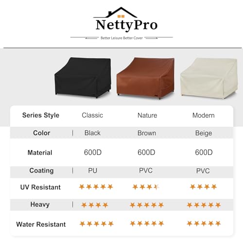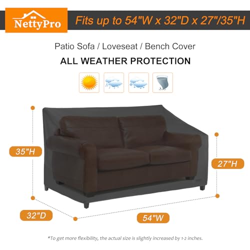 NettyPro Patio Sofa Cover Waterproof Heavy Duty Outdoor Couch Furniture 3 Seater Daybed Cover, 66" Wx 35" Dx 35" H, Black