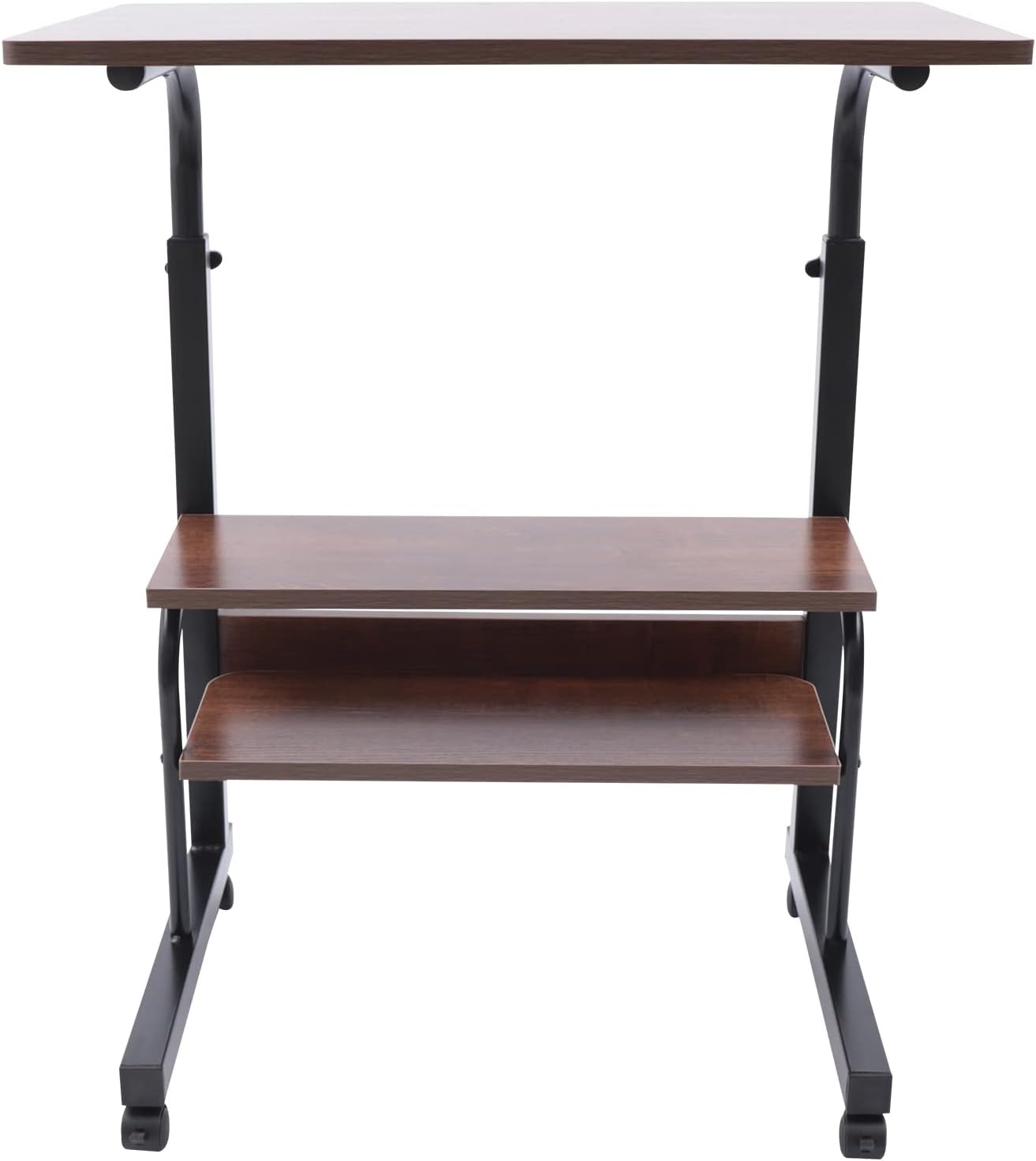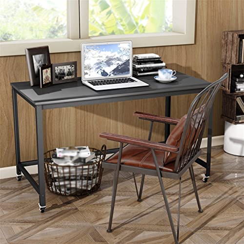 Rolling Computer Desk Wood Top Metal Frame Laptop Desk Study Workstation Black (D (47.5x23.5x29.5))