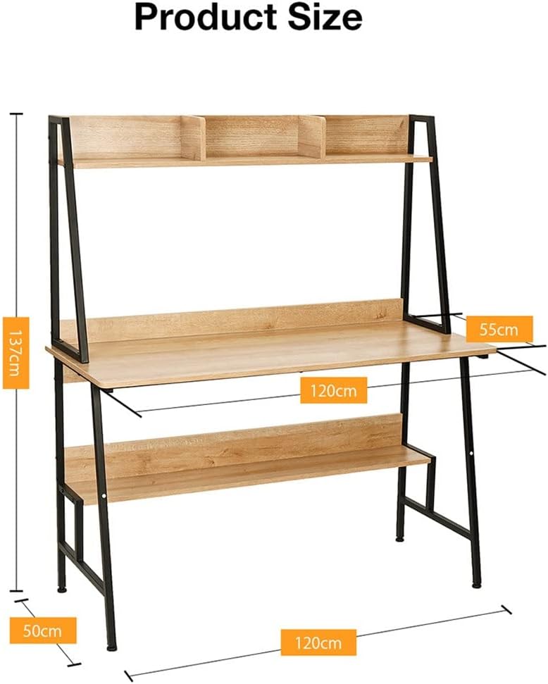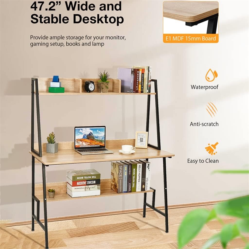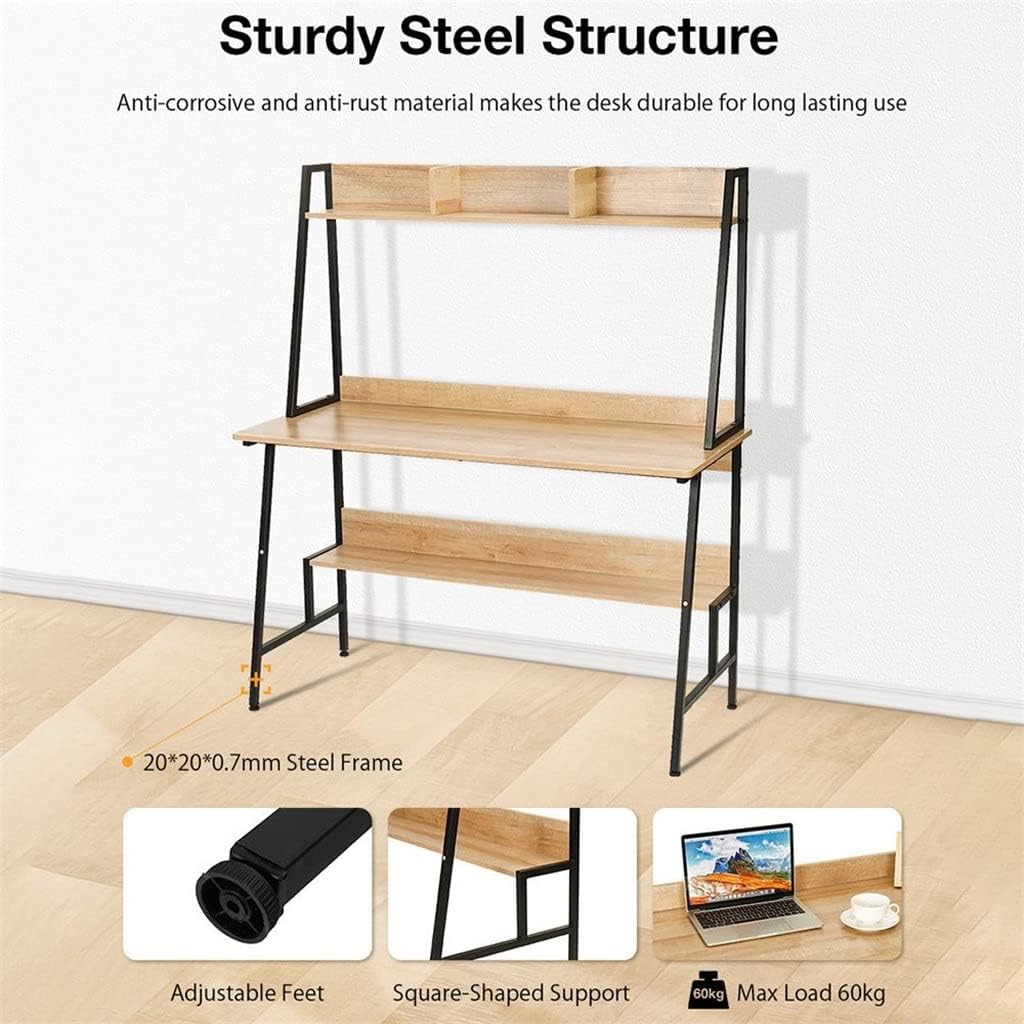 Large Wooden Desktop Computer Desk Office Desk Multi-Layer Computer Laptop Desk Workstation Study Writing Desk Computer PC Table