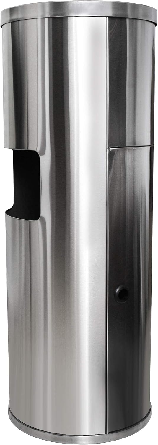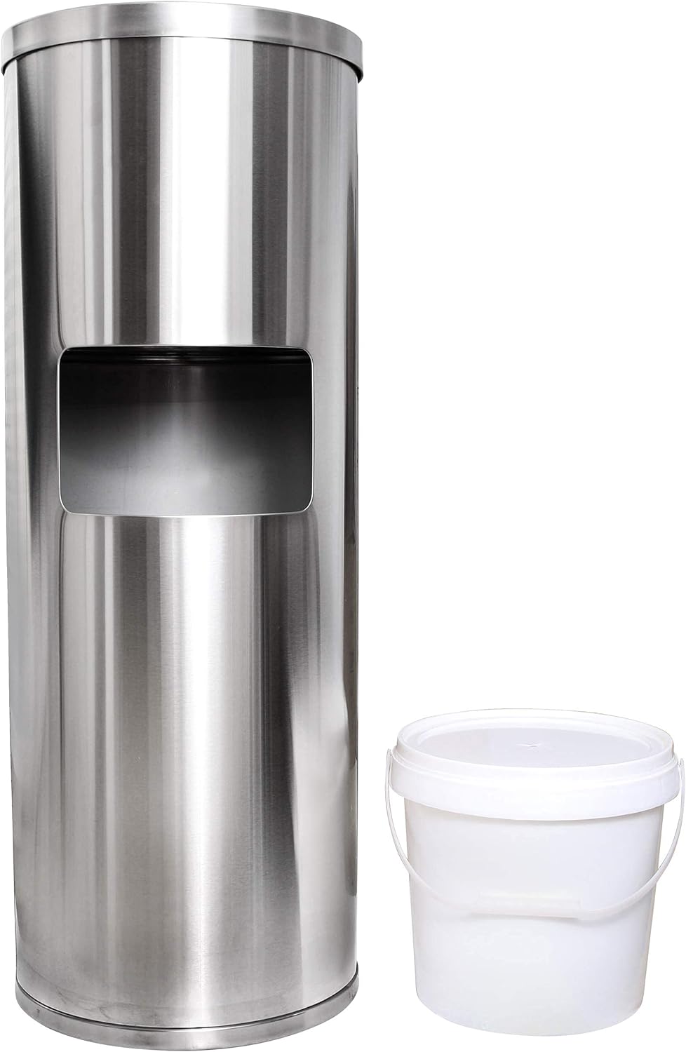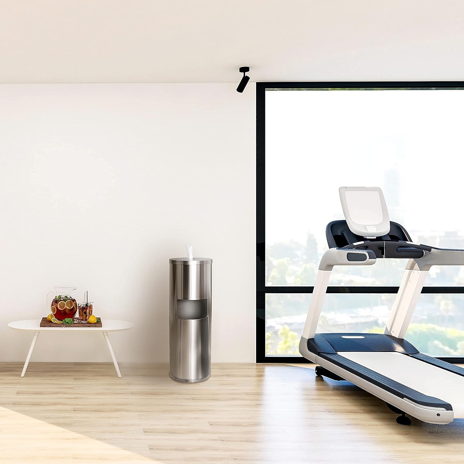 Stainless Steel Floor Stand Wipe Dispenser with Built-in Trash Can: Fits Sanitizing and Disinfecting Wipe Refill Rolls - Perfect for Gyms, Schools, Offices, Commercial Facilities