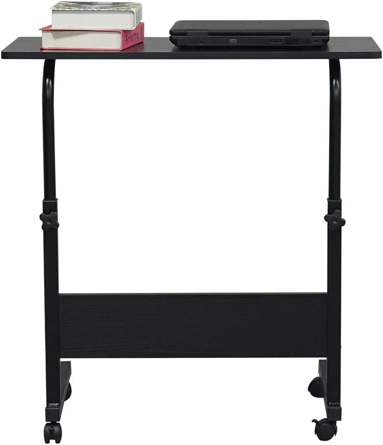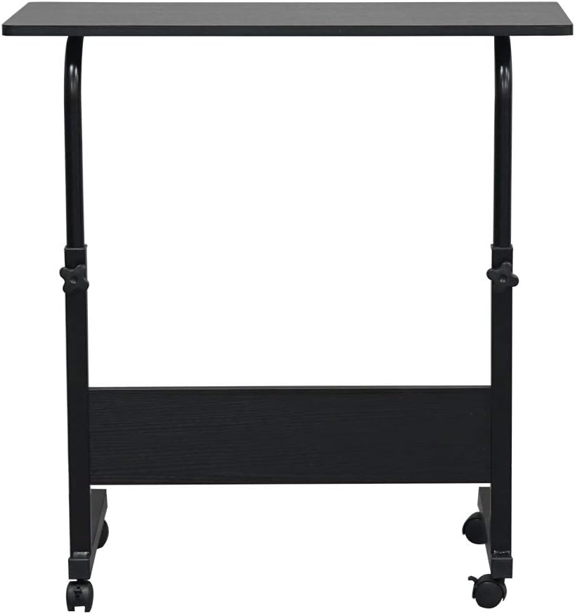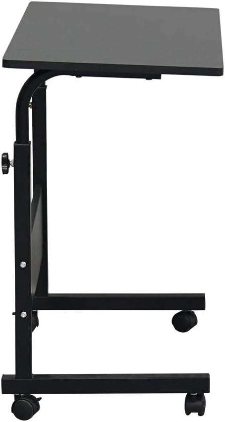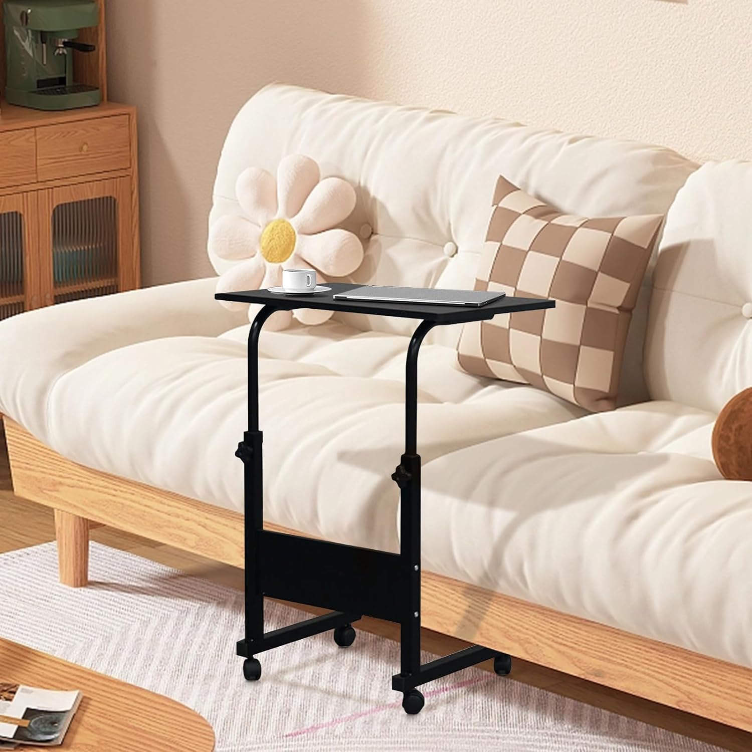Mobile Side Table 31.5 inch Computer Desk with Wheels Height Adjustable Rolling Potable Laptop Cart, C-Shaped Bed Couch Sofa End Tables with Edge Stopper for Livingroom Bedroom, Black