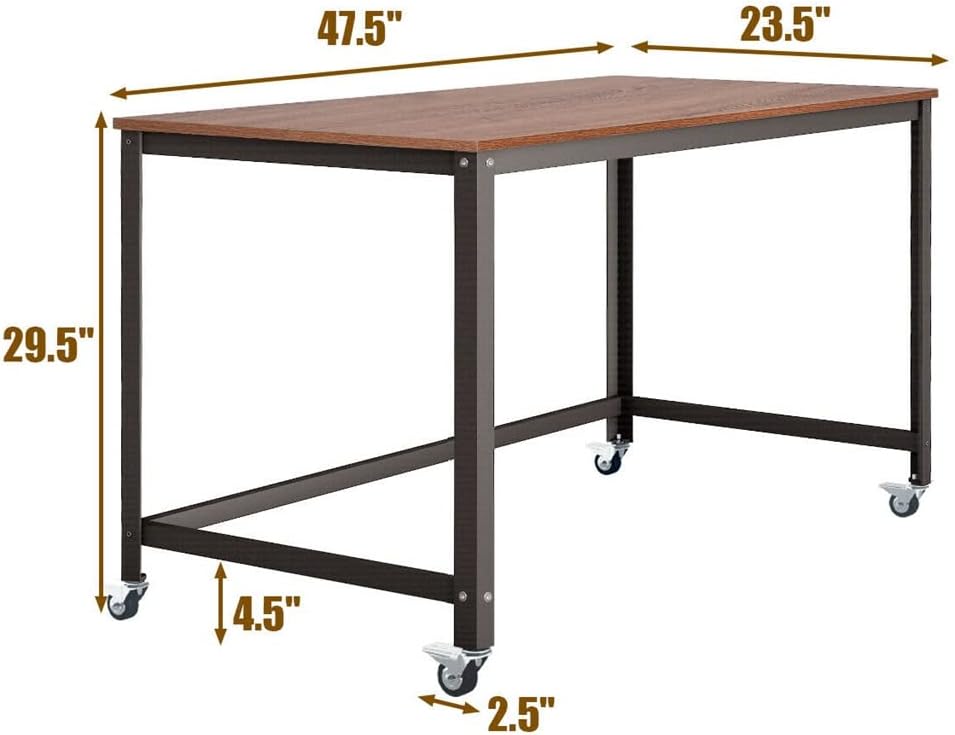 Rolling Computer Desk Metal Frame Computer Laptop Desk Wooden Top Study Workstation Commemoration Day