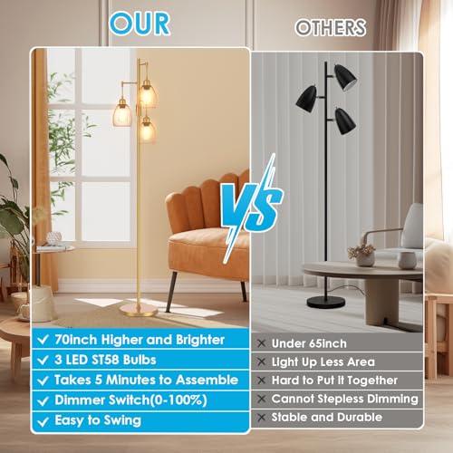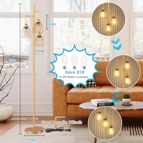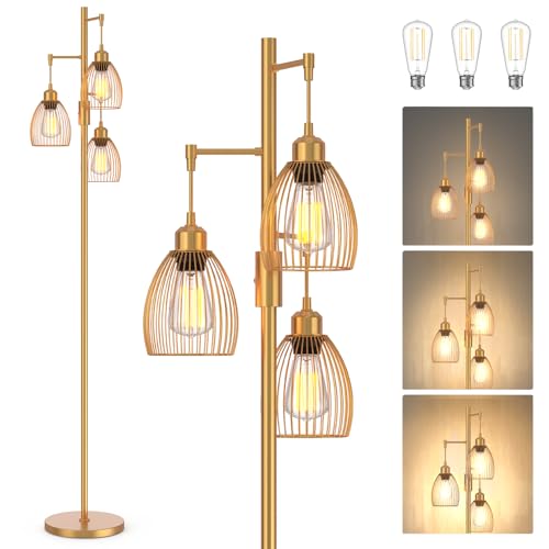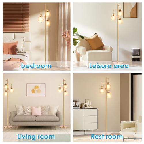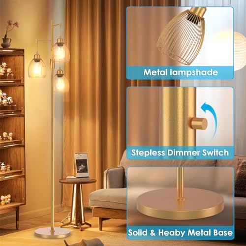 Oneach 62" Gold Floor Lamp for Living Rooms Tall Arc Standing Lamps with remote Bedrooms Industrial Corner Nursery Girls Kid Vintage Mid-Century Modern Reading Light Office(Bulb Included)