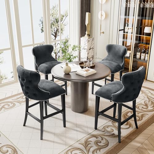 Upholstered Counter Height Bar Stools Set of 4, 26 inch Barstools with Backs, Velvet Counter Stools for Kitchen Island, High Tall Bar Chairs with Footrest, Nailhead Trim(White)