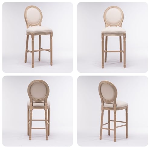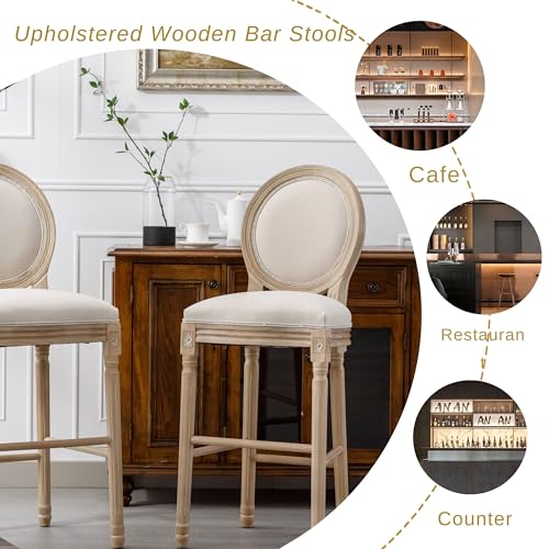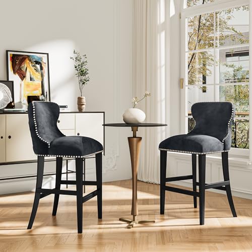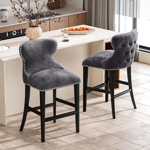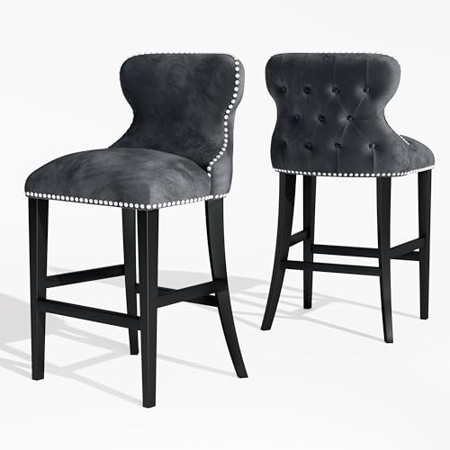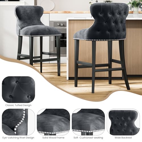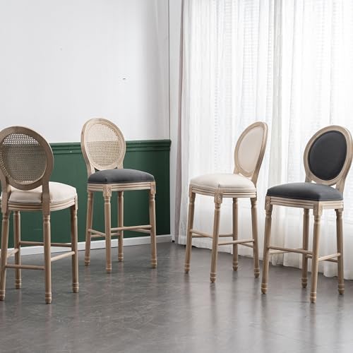 French Country Wooden Bar stools Set of 2,Upholstered Vintage Armless Kitchen Bar Chairs,26" Classic Counter Stools(Dark Gray,Rattan Back)