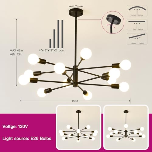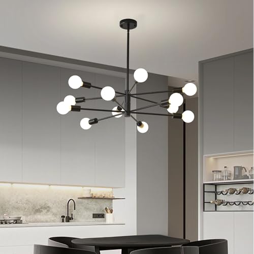 Modern Sputnik Chandelier Ceiling Light Fixture 10-Light E26 Industrial Chandeliers Black Gold Farmhouse Chandelier Height Adjustable Chandeliers for Dining Room, Living Room, Kitchen Island
