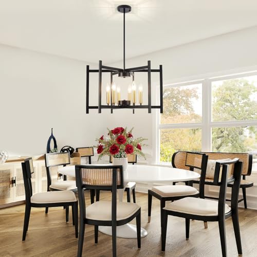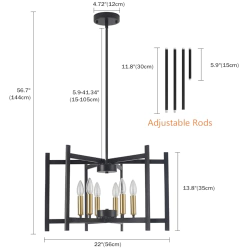22” Modern Dinning Room Light Fixtures Over Table,Black Kitchen Chandelier for Dinning Room, Rustic Chandelier for Living Room,Modern Industrial Chandelier for,Entryway,Foyer (E12 Bulb)