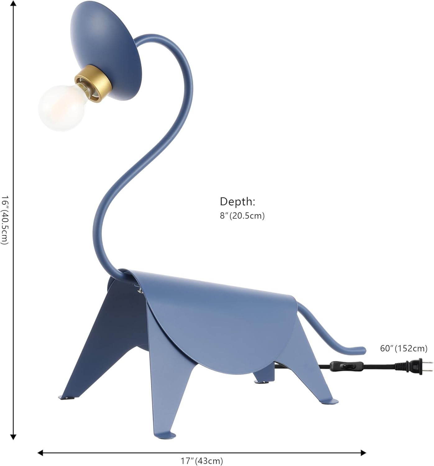 JONATHAN Y JYL7133A Bradley 16" Modern Industrial Iron Brachiosaurus LED Kids' Lamp Eclectic, Contemporary, Minimalist, Office, Living Room, Dining Room, Bedroom, Blue