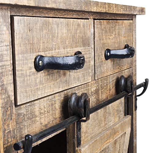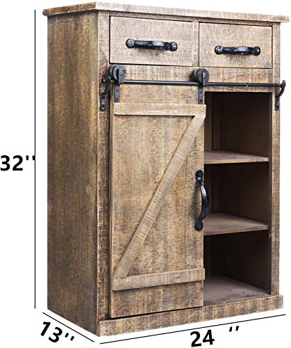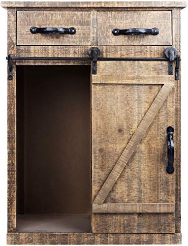 Sliding Farmhouse Barn Door Storage Cabinet Accent Hallway Table Antique Rustic Brown Wooden Home House Decor Decoration Furniture… (Brown)