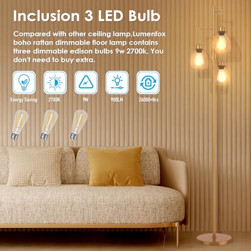 Boho Rattan Floor Lamp - Standing Lamps for Living Room 70'' Dimmable Floor Lamp with Cage Shade, Industrial Farmhouse Floor Lamps Rustic Floor Lamps Vintage Lamp for Living Room Bedroom Office