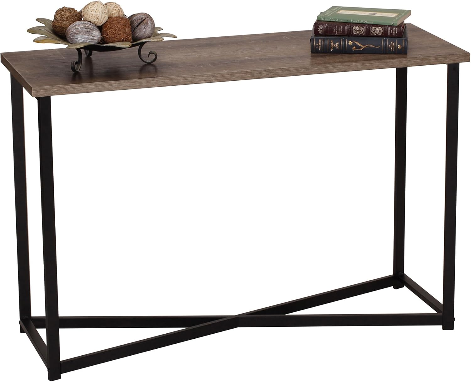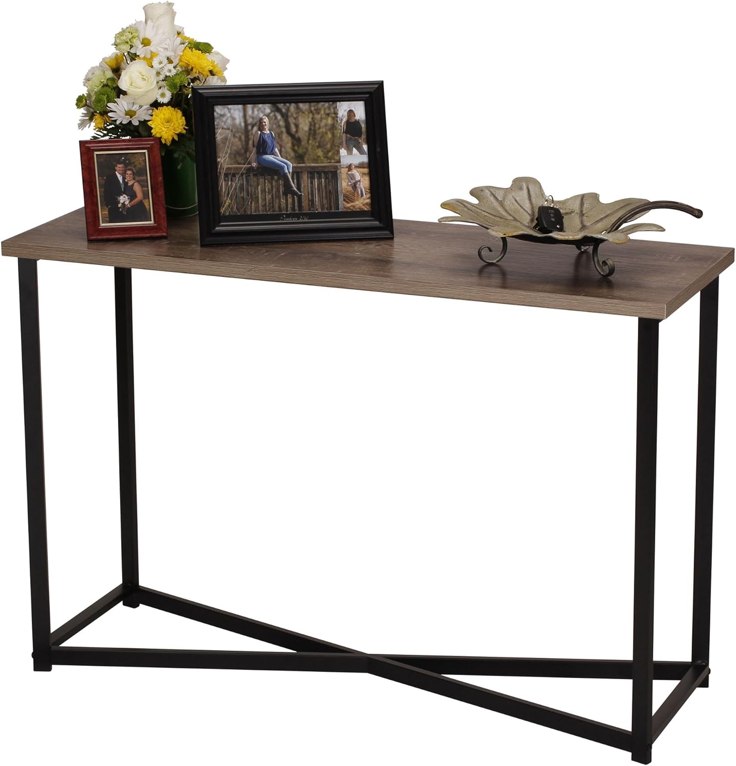 Household Essentials Ashwood Sofa Table | Console Table for Entryway | Gray-Brown & Grey Top Black Frame Ashwood Round Coffee Table, 31.5 x 31.5