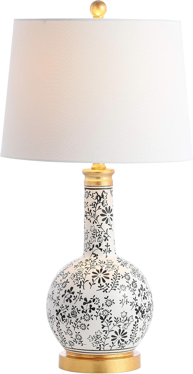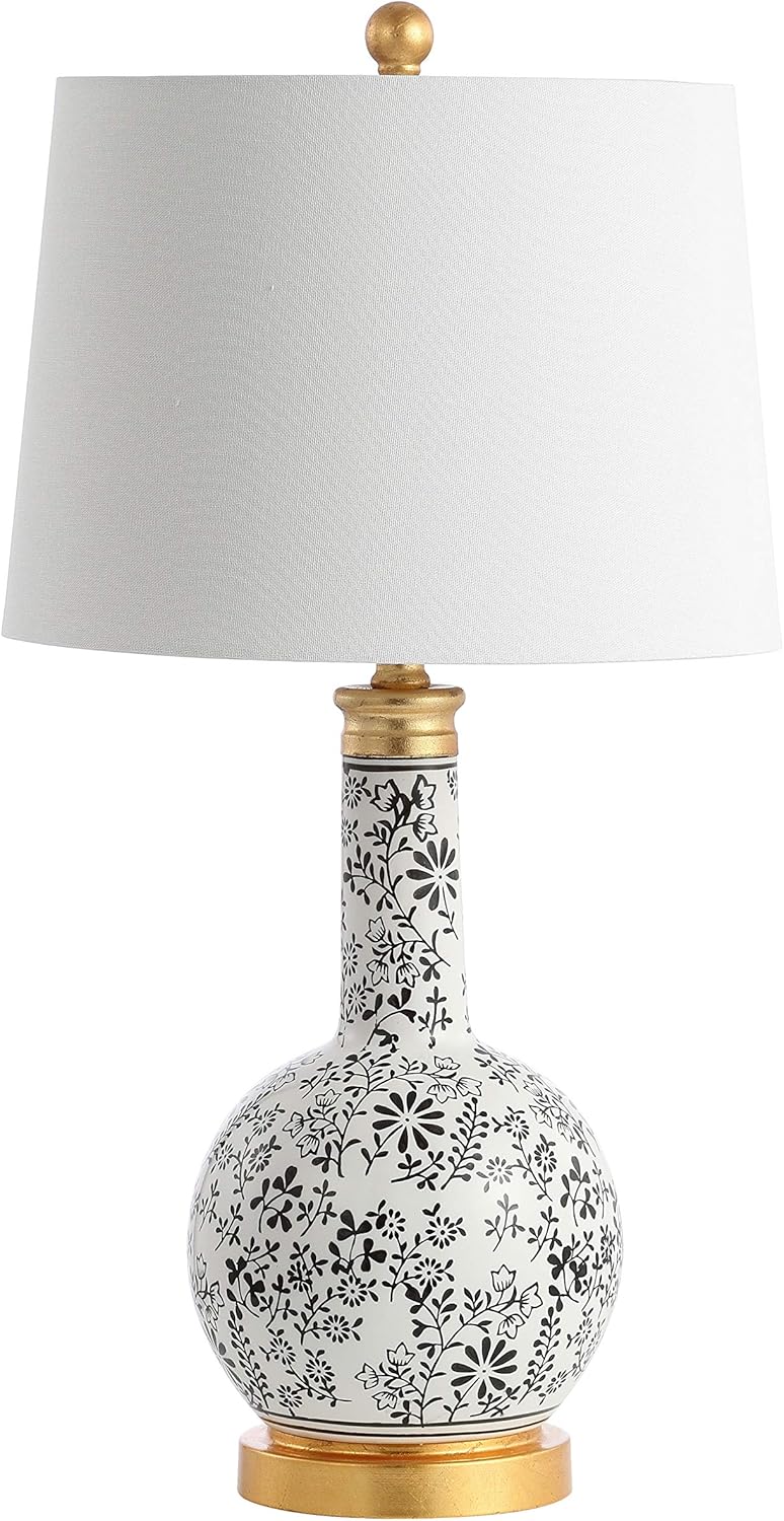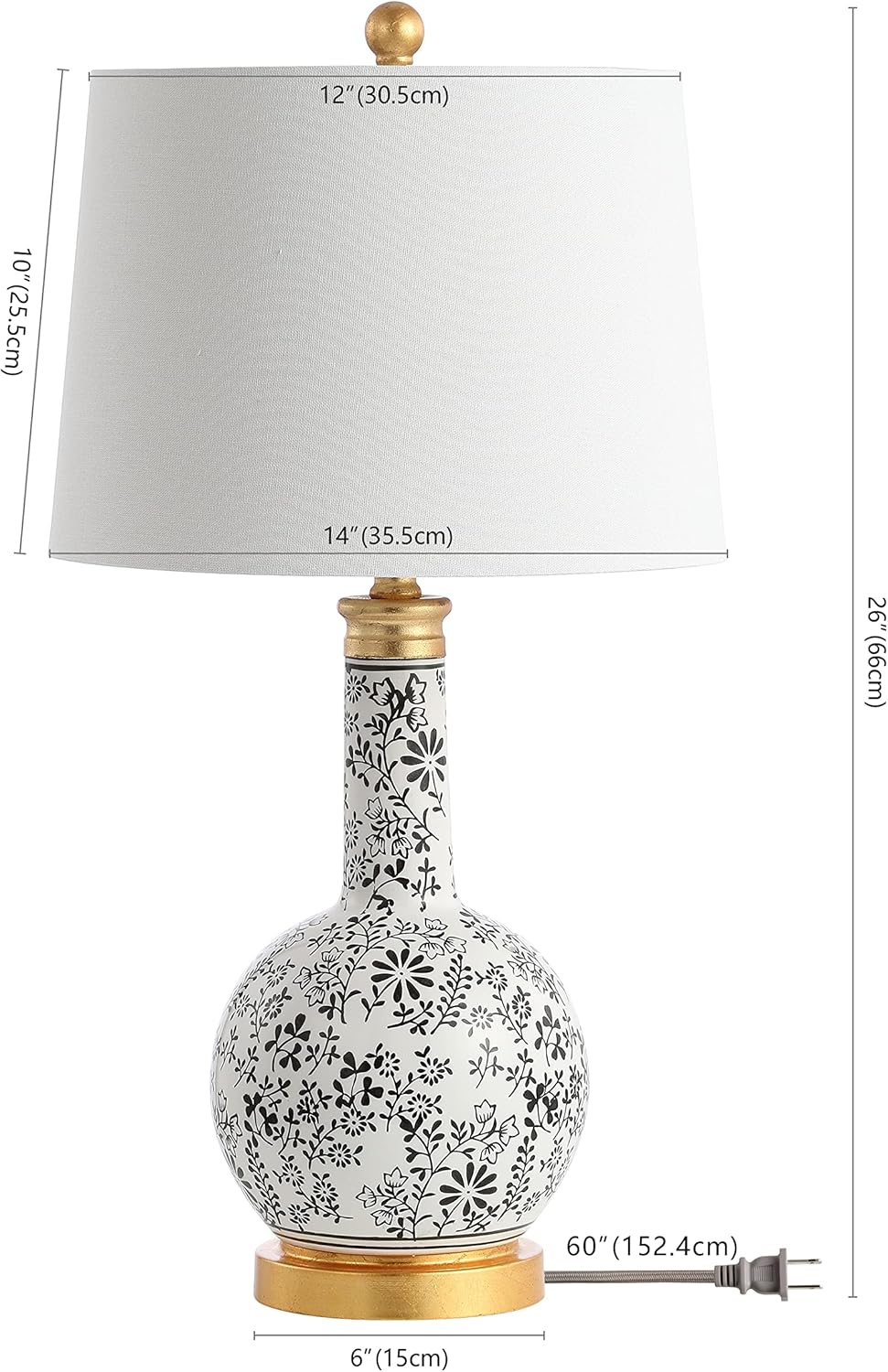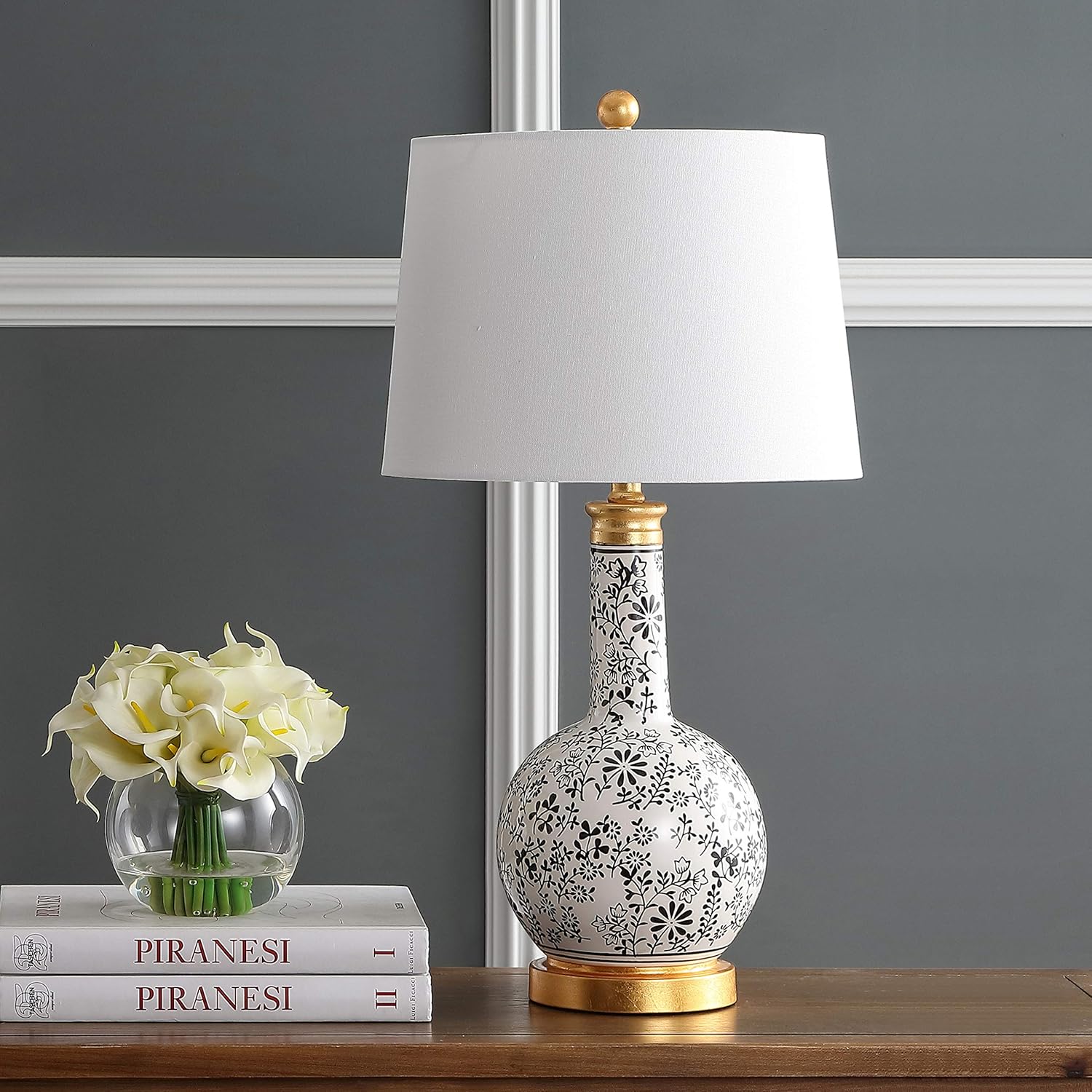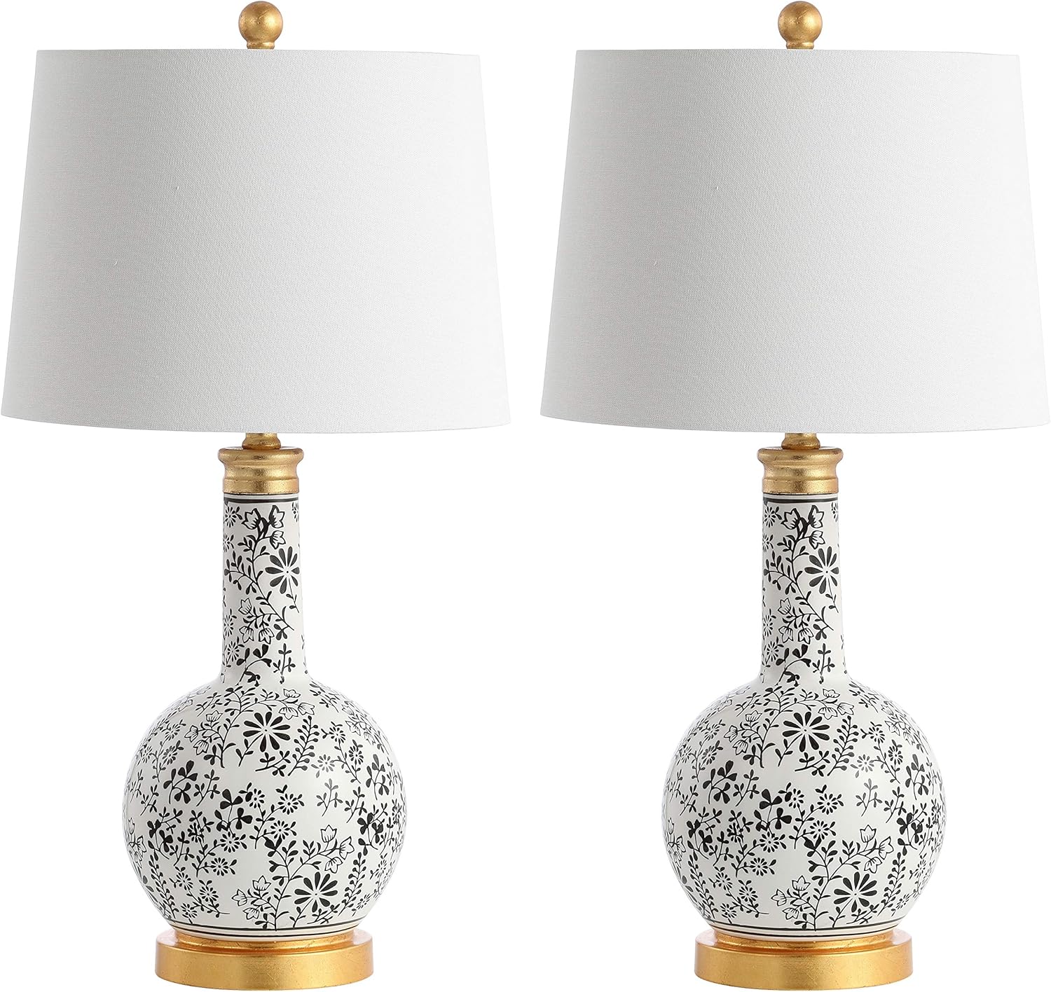 SAFAVIEH Lighting Collection Bodie Floral Black/ White 26-inch Bedroom Living Room Home Office Desk Nightstand Table Lamp Set of 2 (LED Bulbs Included)
