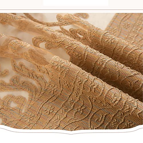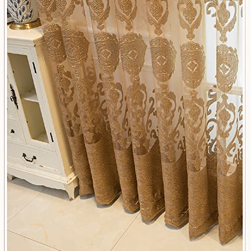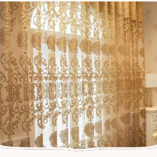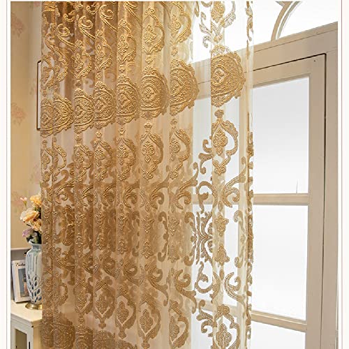 Amidoudou 1 Pair Luxury European Sheer Curtains Hollow Embroidered Tulle Curtains for Bedroom Living Room (Gold,54x96 Inch)