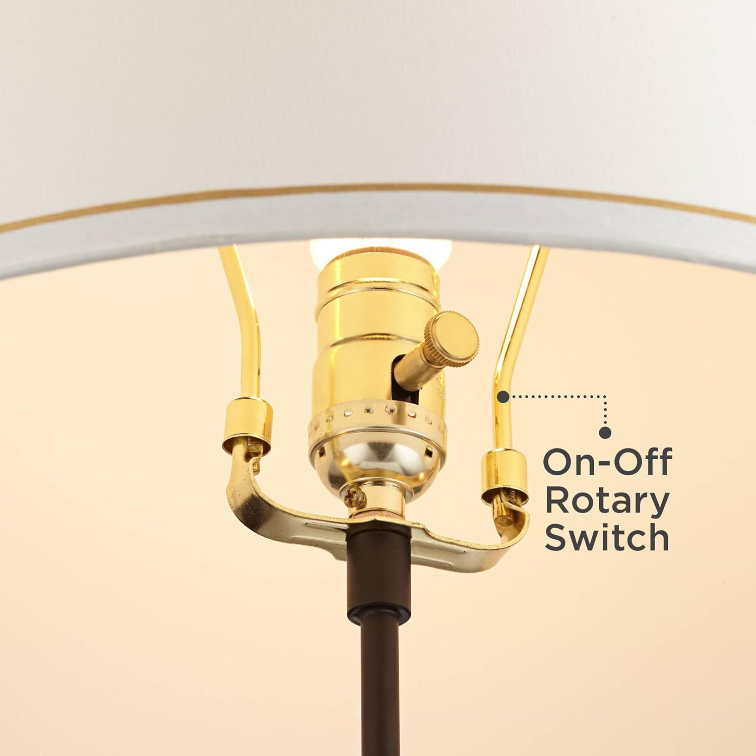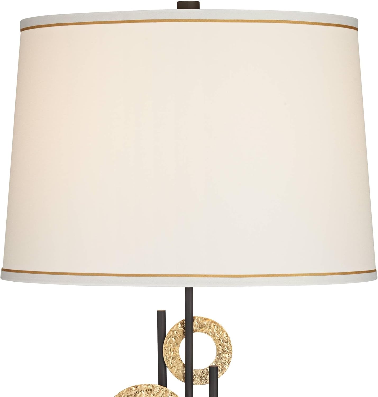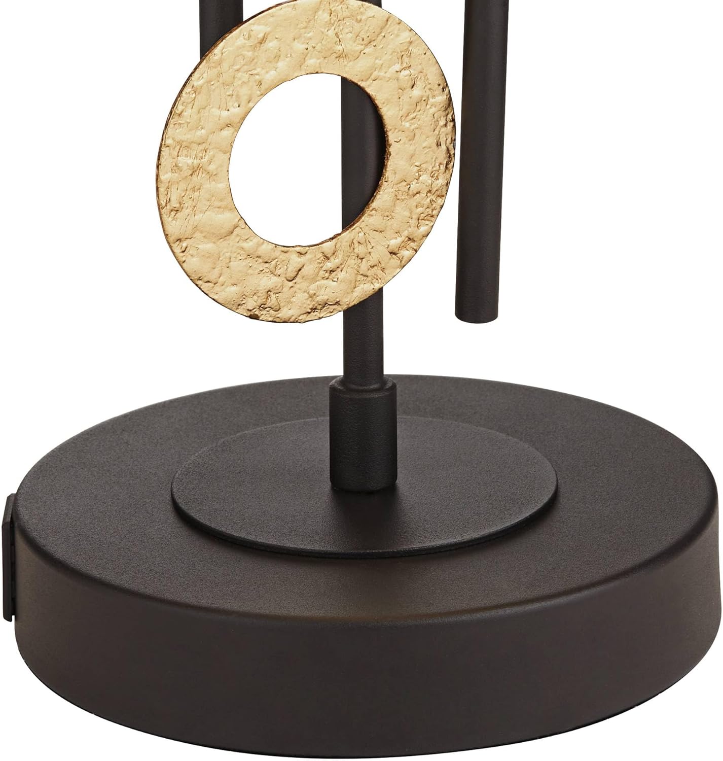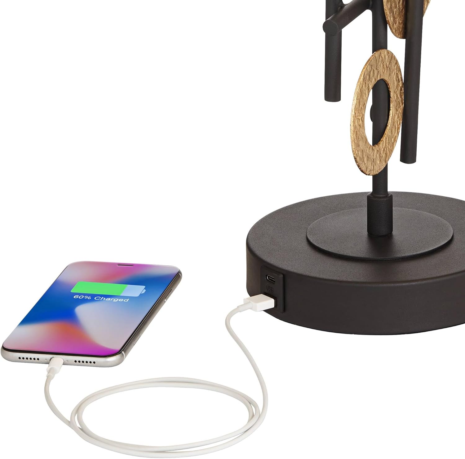 Possini Euro Design Jupiter 30" Tall Geometric Sculpture Modern End Table Lamp Dual USB Ports Black Gold Single Fabric White Shade Living Room Charging Bedroom Bedside Nightstand House Office Home