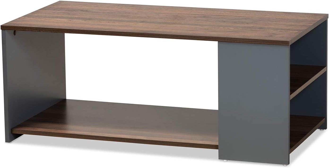 Baxton Studio Thornton Modern and Contemporary Two-Tone Walnut Brown and Grey Finished Wood Storage Coffee Table
