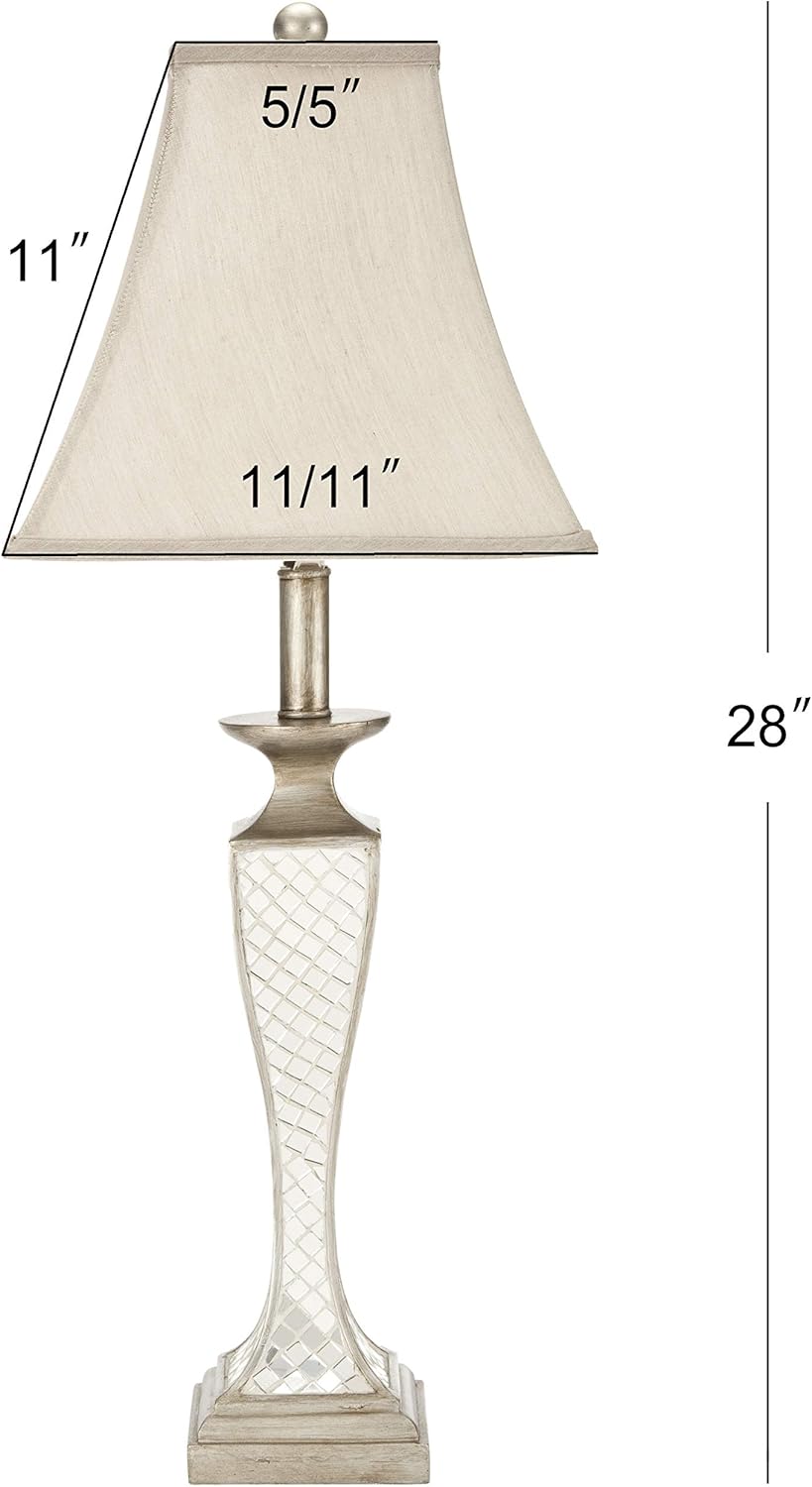 SAFAVIEH Lighting Collection Kailey Glass Lattice Silver/ Cream Shade 28-inch Bedroom Living Room Home Office Desk Nightstand Table Lamp Set of 2 (LED Bulb Included)