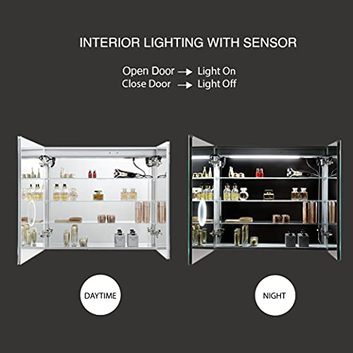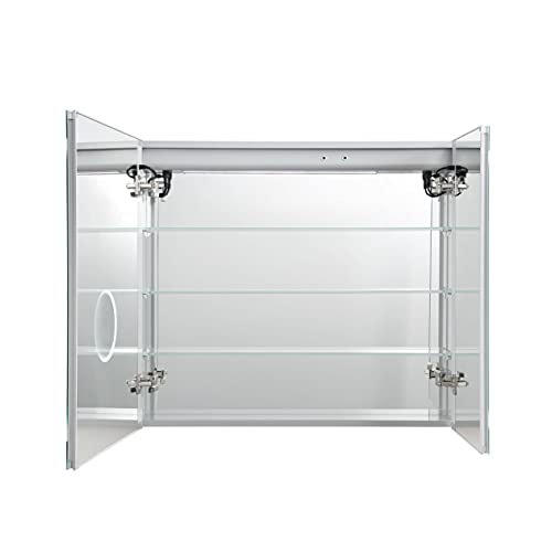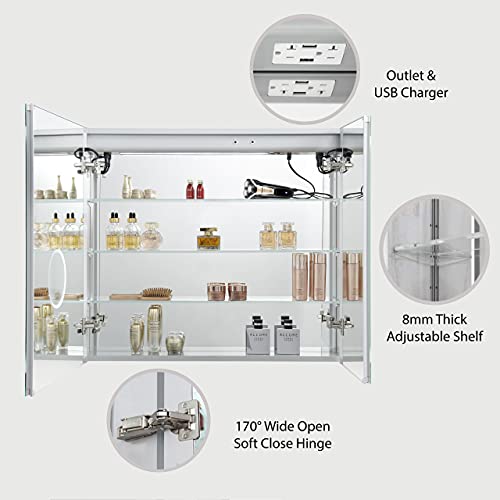 Blossom Recessed or Surface LED Mirror Lighted Medicine Cabinet with Lights, LED Medicine Cabinet w/Defogger, Dimmer, 3X Makeup Mirror, Outlets & USB (20x32/Right Hinge/Zoom Mirror)