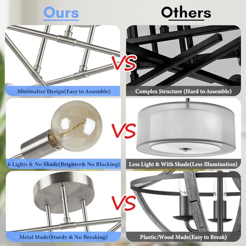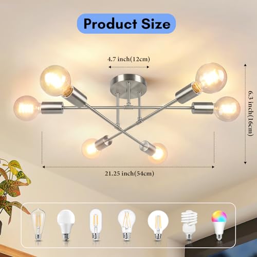 Modern Sputnik Chandelier, 6-Light Farmhouse Semi Flush Mount Ceiling Light Fixtures, Industrial Chandeliers for Dining Room Kitchen Bedroom Living Room Hall Foyer Entryway (Black and Gold) - E26 Base