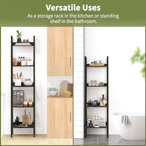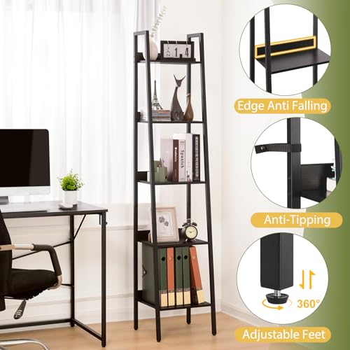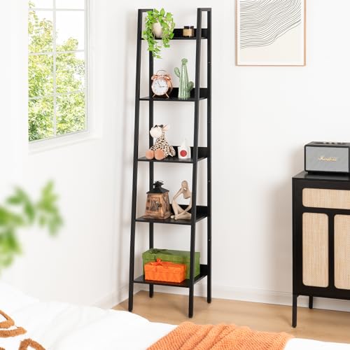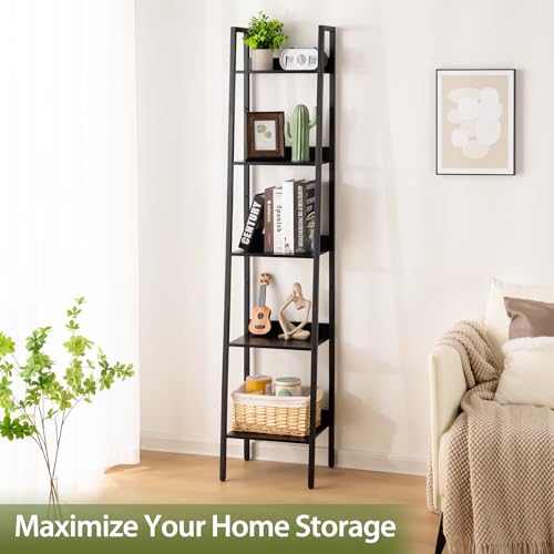 Yoobure Ladder Shelf, 5 Tier Tall Ladder Bookshelf Corner Shelf, Industrial Book Shelf Ladder Bookcase Narrow, Standing Storage Shelves Display Shelf for Bedroom Living Room Office Kitchen Bathroom
