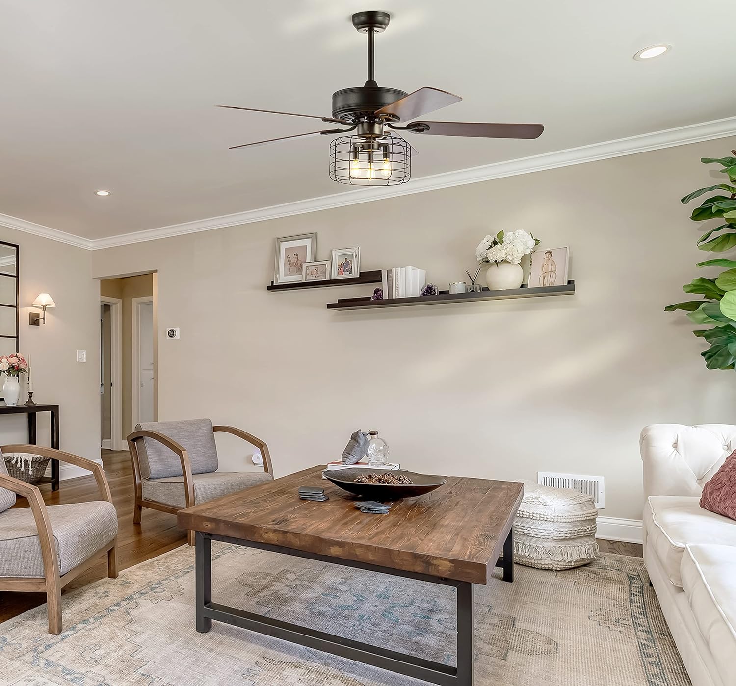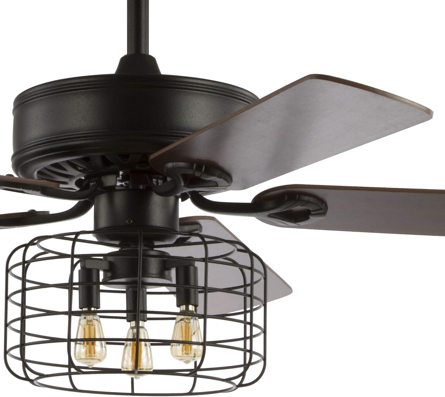 JONATHAN Y JYL9603A Asher 52" 3-Light Industrial Metal/Wood LED Ceiling Fan With Remote, Farmhouse, Bohemian, Industrial, Rustic, Transitional, Southwestern, Living Room, Bedroom, Forged Black
